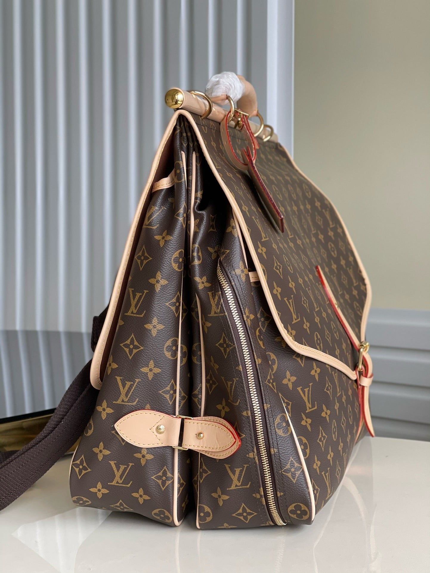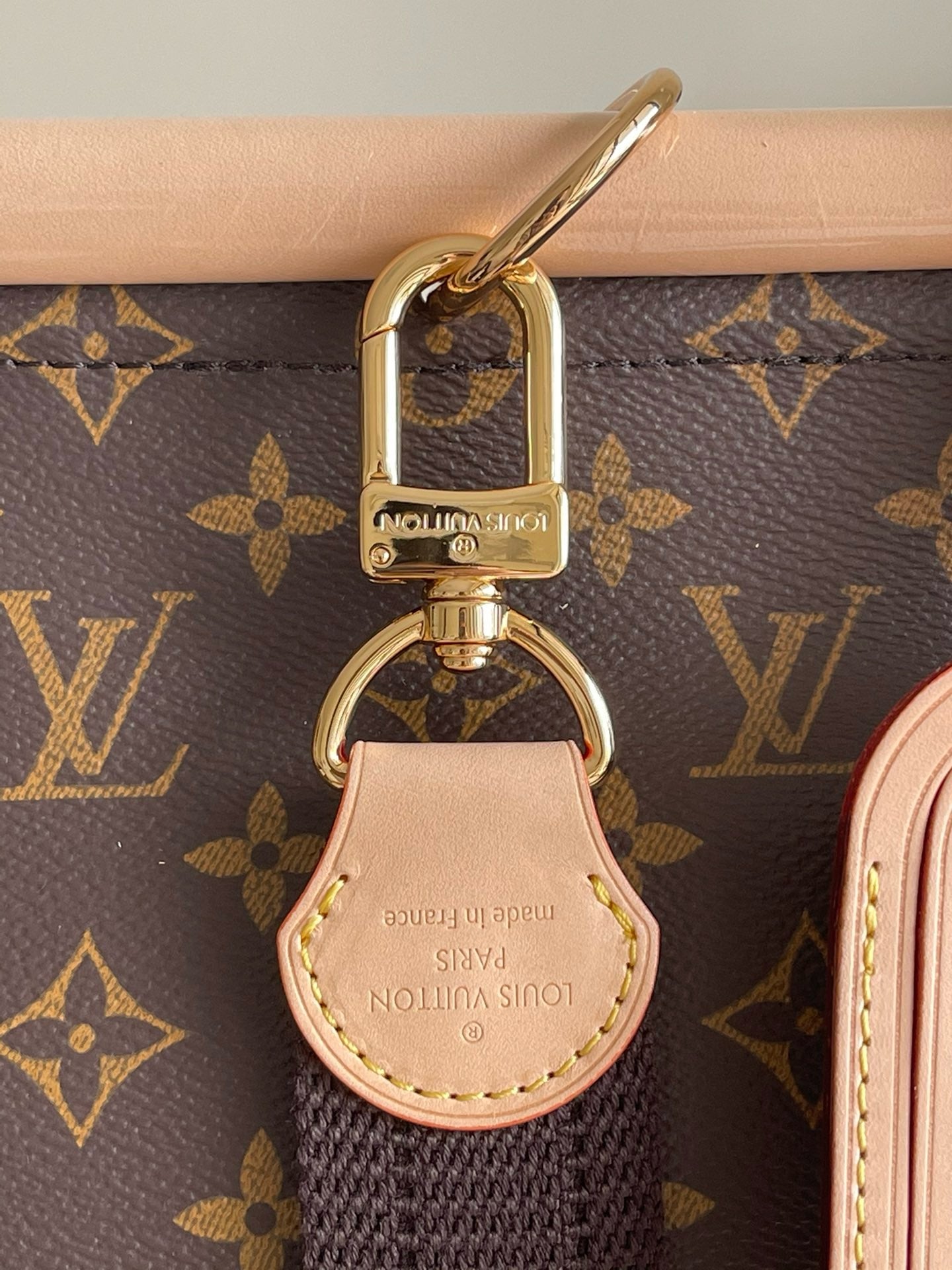 - Monogram canvas, natural cowhide trim