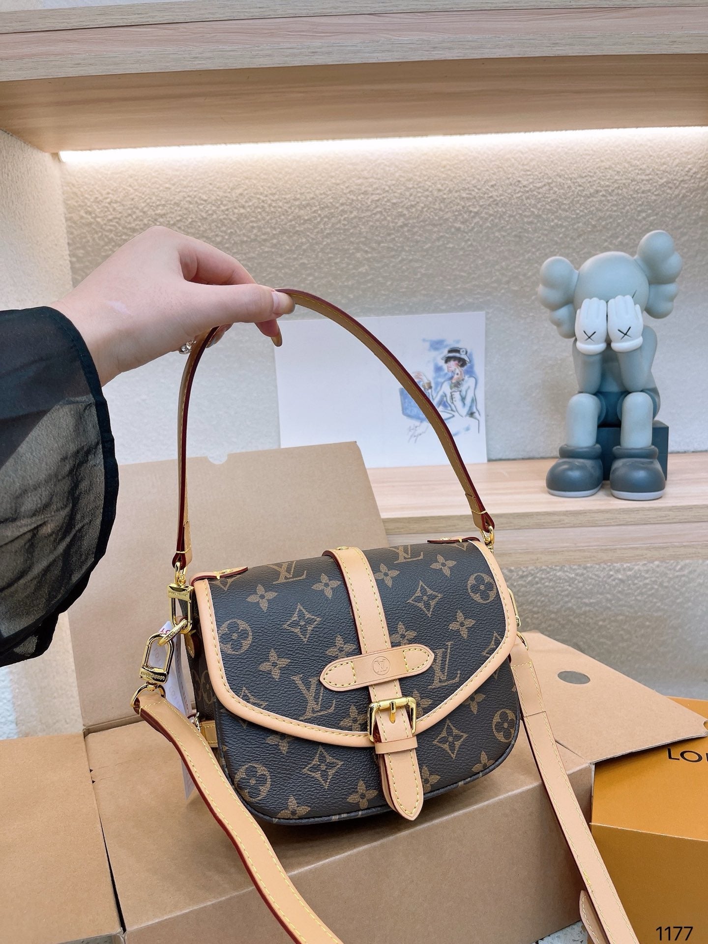 The Saumur BB handbag in Monogram canvas reimagines a beloved archival design in contemporary style. The saddle-bag shape and natural cowhide-leather buckles evoke an equestrian spirit, but the front buckle conceals a magnetic closure: a convenient modern touch. With room inside for a day’s essentials, this compact bag is versatile too, thanks to the detachable strap and handle.
