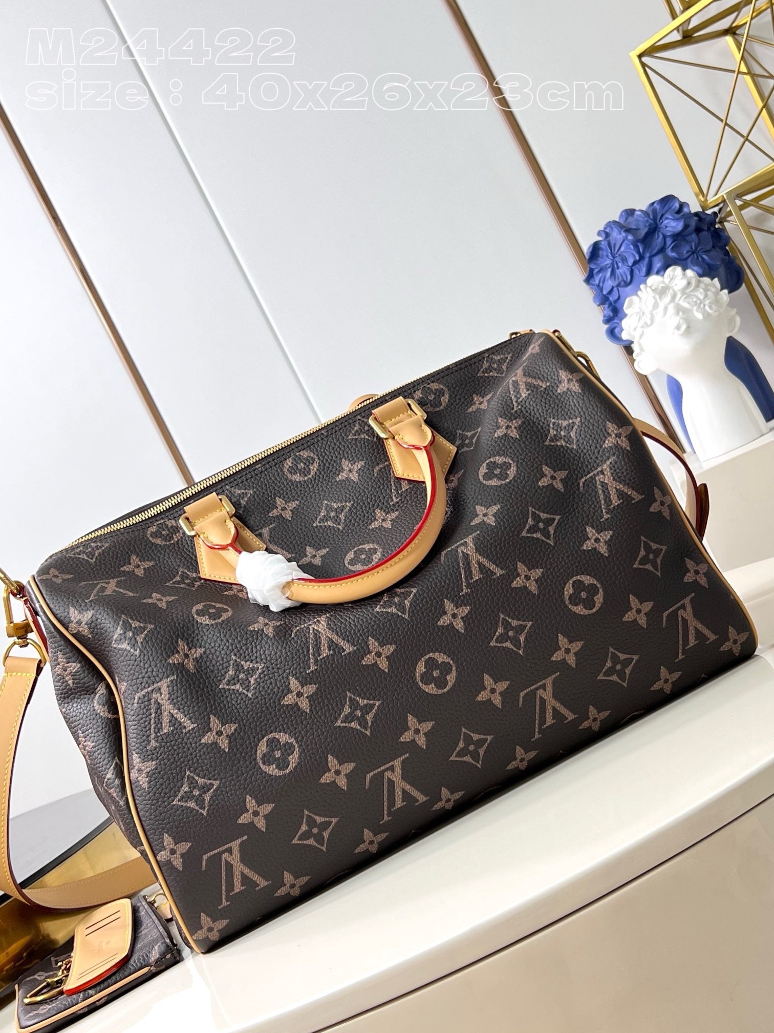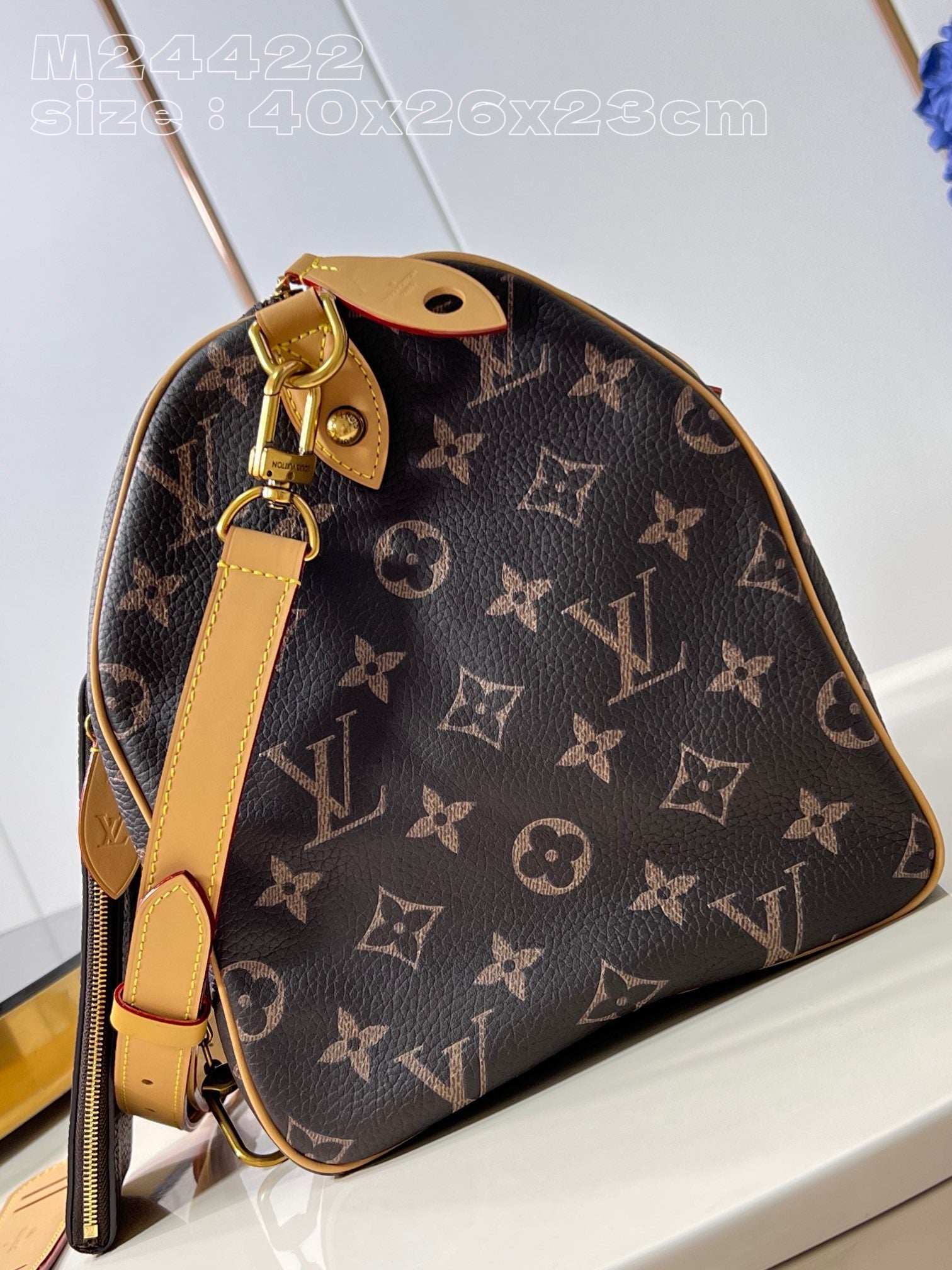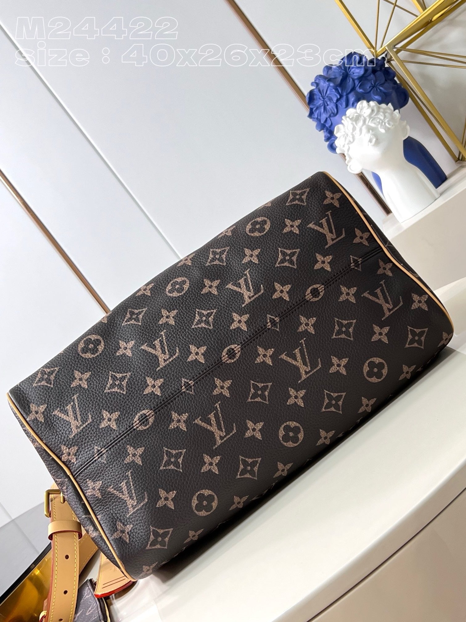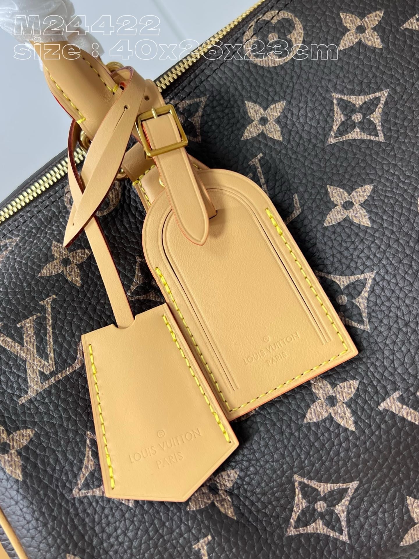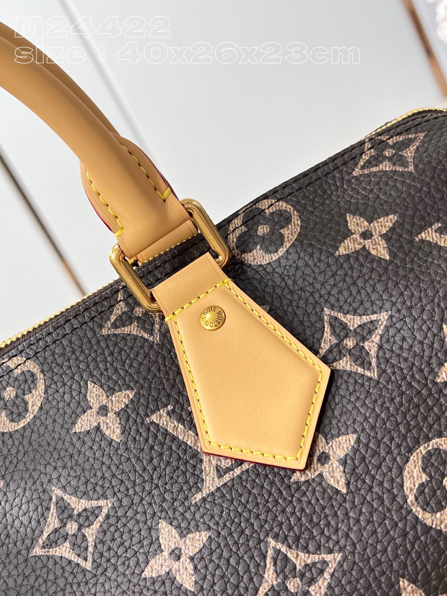 Working with naturally supple grained calfskin, Creative Director Pharrell Williams has given this Speedy P9 Bandoulière 40 Monogram Leather a super-soft feel. The Monogram is printed on bright leather in a high-end silk-screen technique that perfectly reproduces the almost blurry effect of Monogram printed on canvas. This Speedy is fully lined with ultra-luxurious lambskin leather.