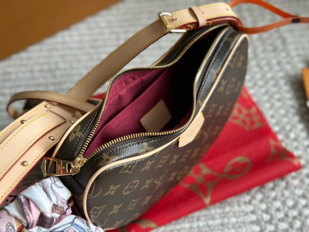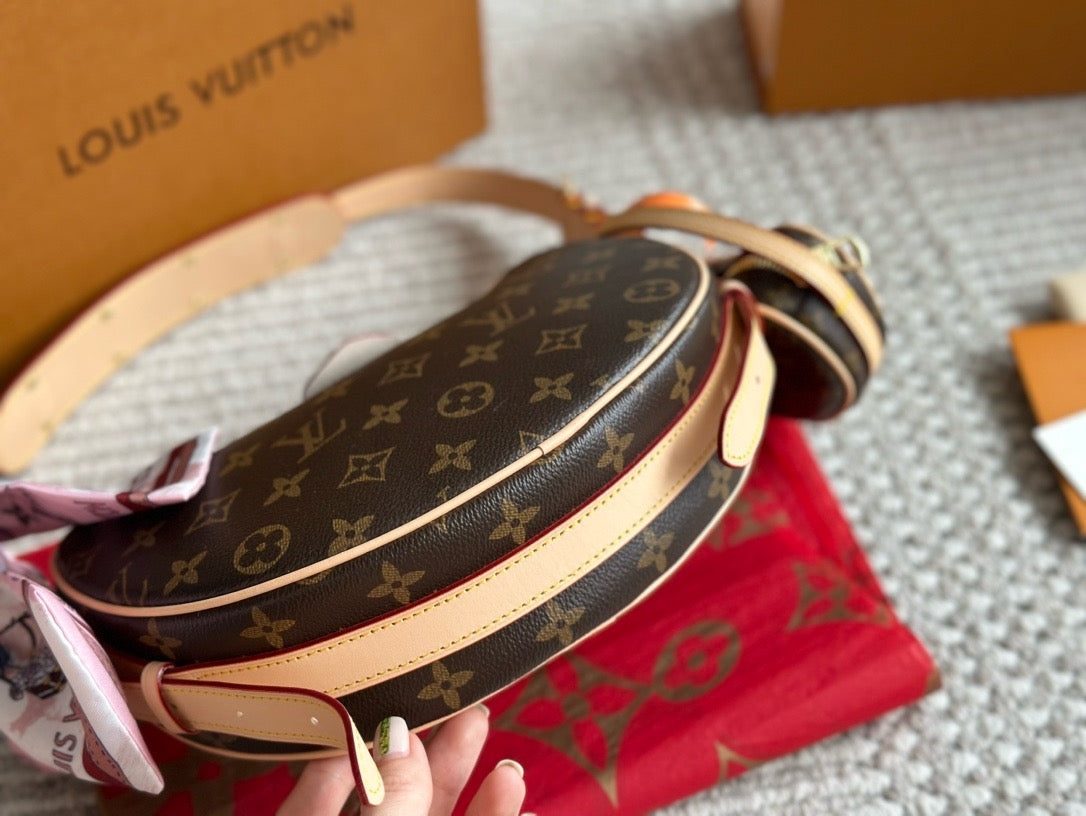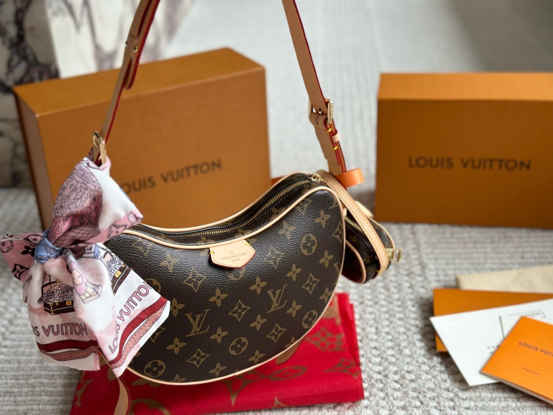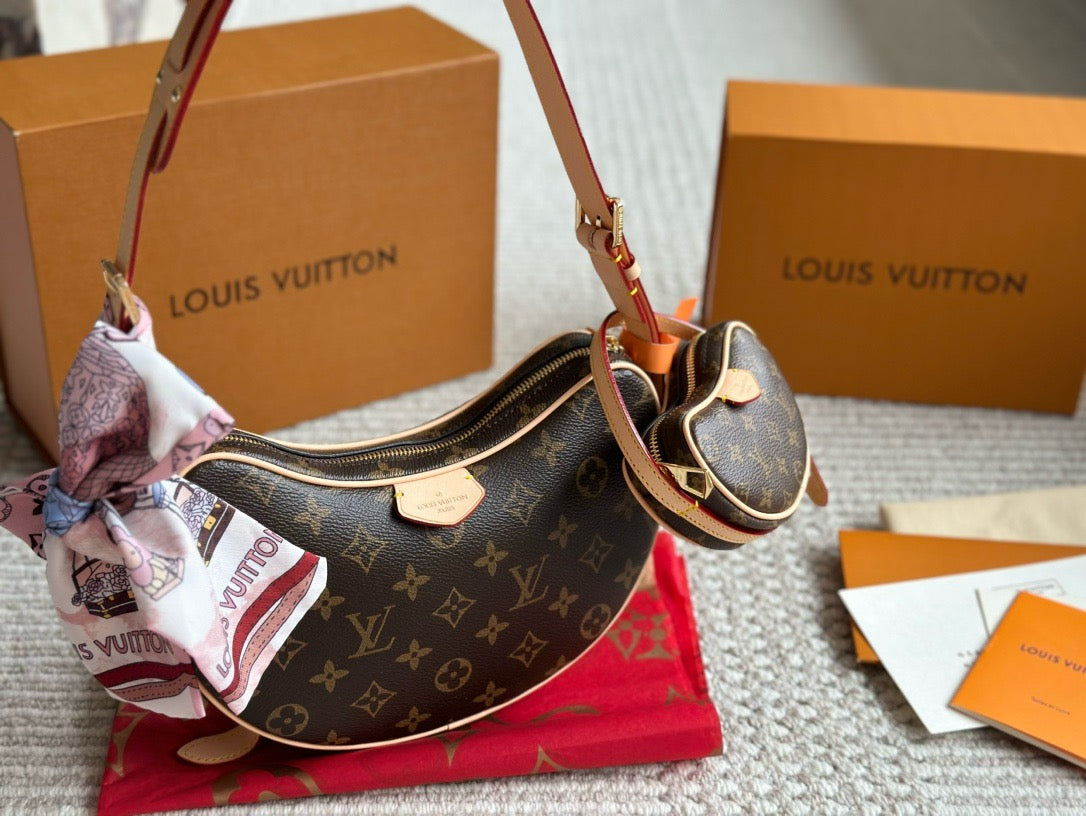 Made from certified-organic cotton, Monogram Denim canvas brings casual sophistication to the Croissant MM handbag. With its detachable strap that adjusts on both sides, the versatile Croissant can be worn cross-body or on the shoulder, with or without the mini croissant attached. Each bag comes with a matching mini version of the Croissant that is four times smaller than the original.