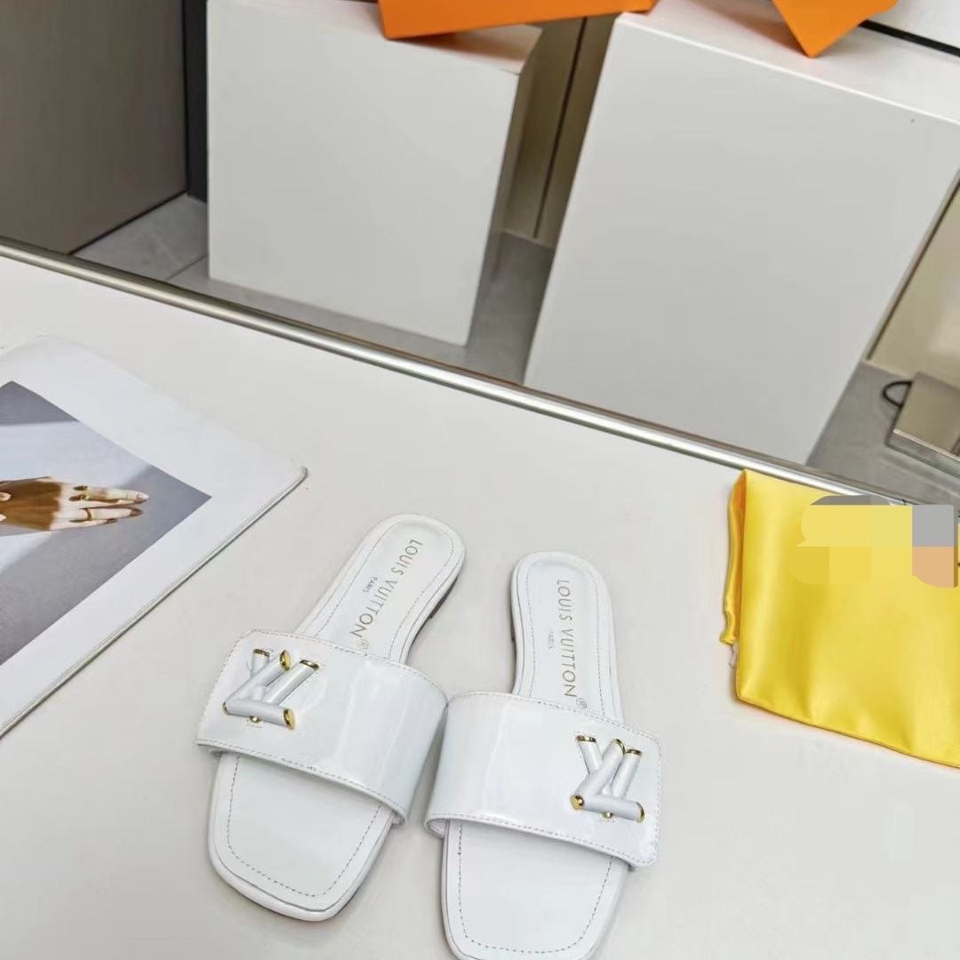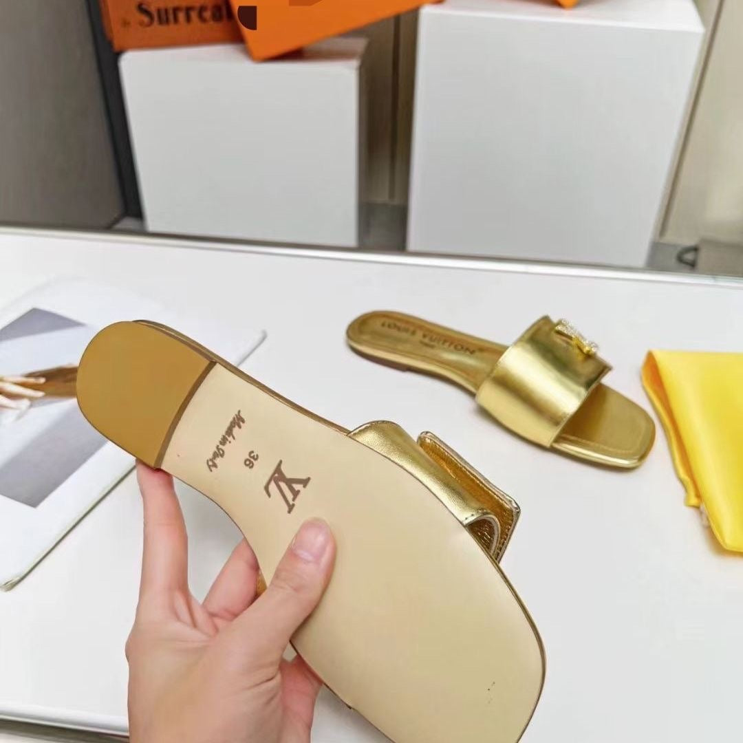 The Shake flat mule is crafted from soft, metallic lambskin. Its wide front strap is embellished with a jewel-like LV accessory, entirely covered in sparkling crystals, which was inspired by the clasp of the iconic Twist handbag. This model is finished with a fine leather outsole, while the insole is printed with an oversized Louis Vuitton signature.
