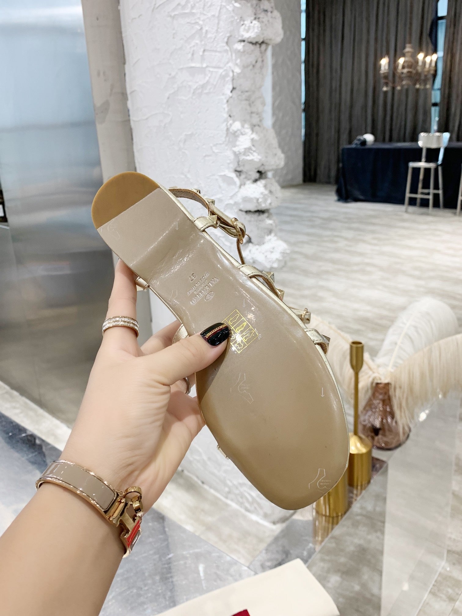 SE1131 V Rockstud Flat Calfskin Sandal with Straps / Size4-10