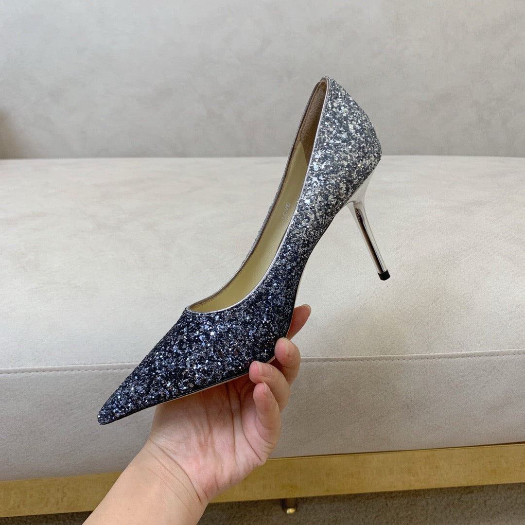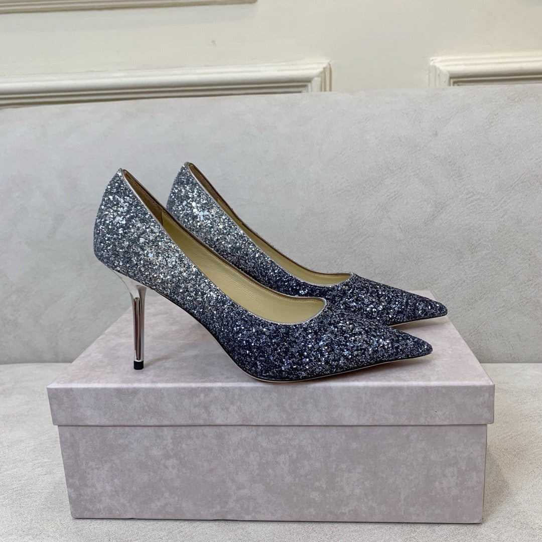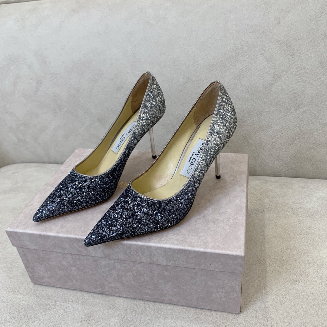 An evolution of the classic pointed pump, Love in a striking dégradé glitter finish has been designed to create a quintessential shoe that feels both familiar and refreshingly new. Its sleek lines, pointed toe and a slim stiletto heel combine to create an ultra-versatile silhouette that is cut higher on the foot and complemented by a dramatic pointed toe. A hand-applied sole ensures maximum comfort, meaning, you really can wear this exquisite pump round the clock.
