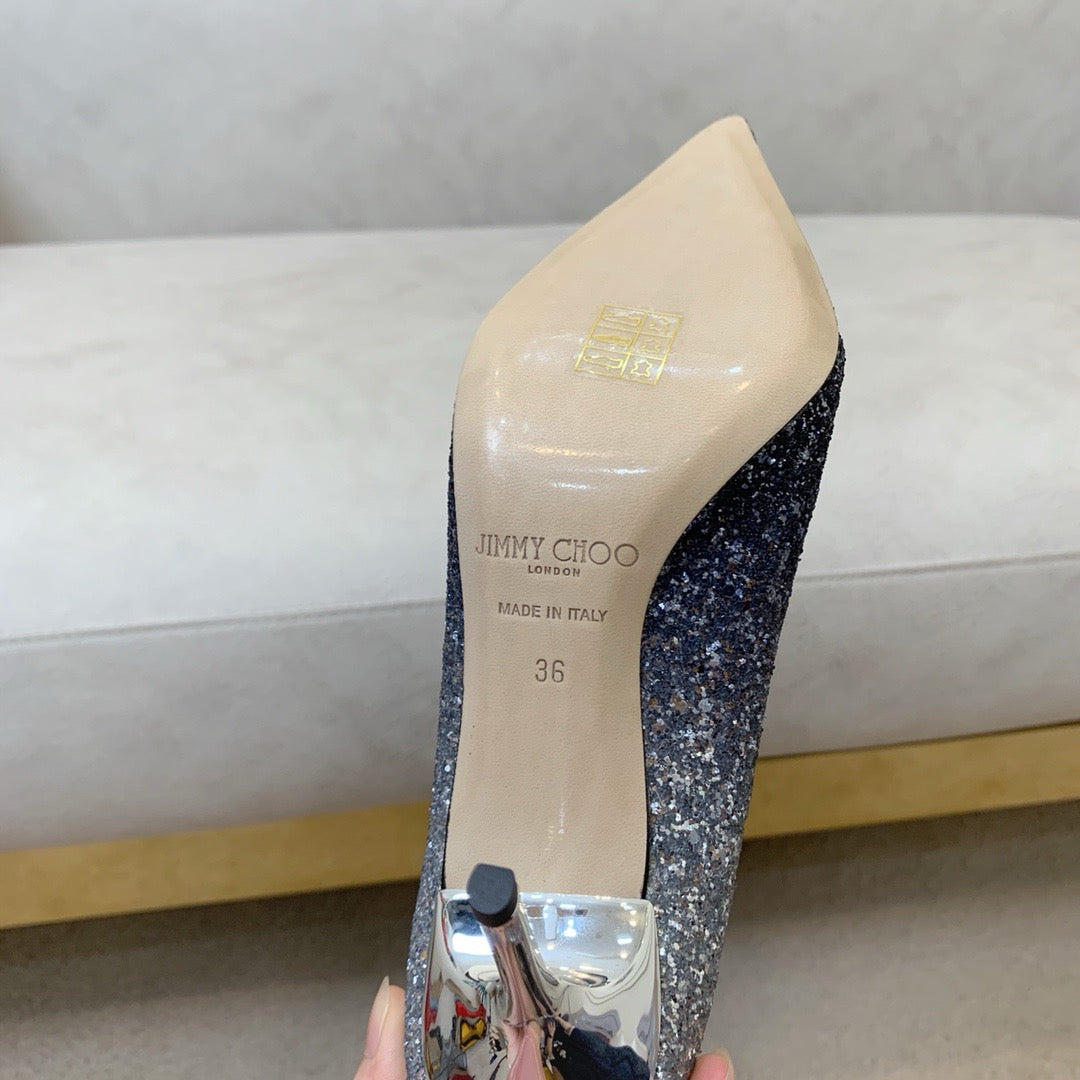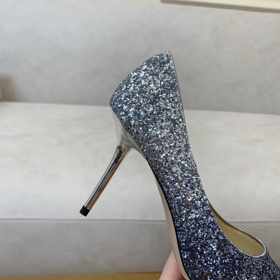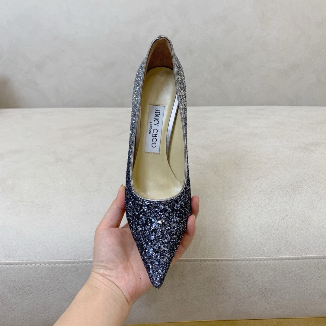 An evolution of the classic pointed pump, Love in a striking dégradé glitter finish has been designed to create a quintessential shoe that feels both familiar and refreshingly new. Its sleek lines, pointed toe and a slim stiletto heel combine to create an ultra-versatile silhouette that is cut higher on the foot and complemented by a dramatic pointed toe. A hand-applied sole ensures maximum comfort, meaning, you really can wear this exquisite pump round the clock.