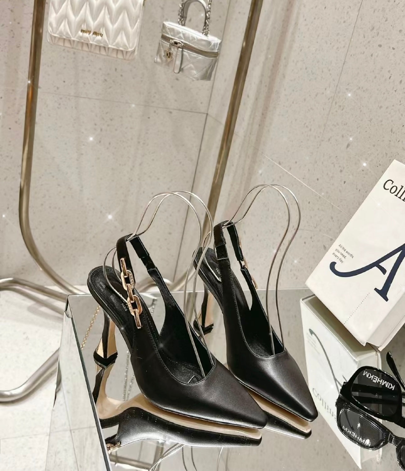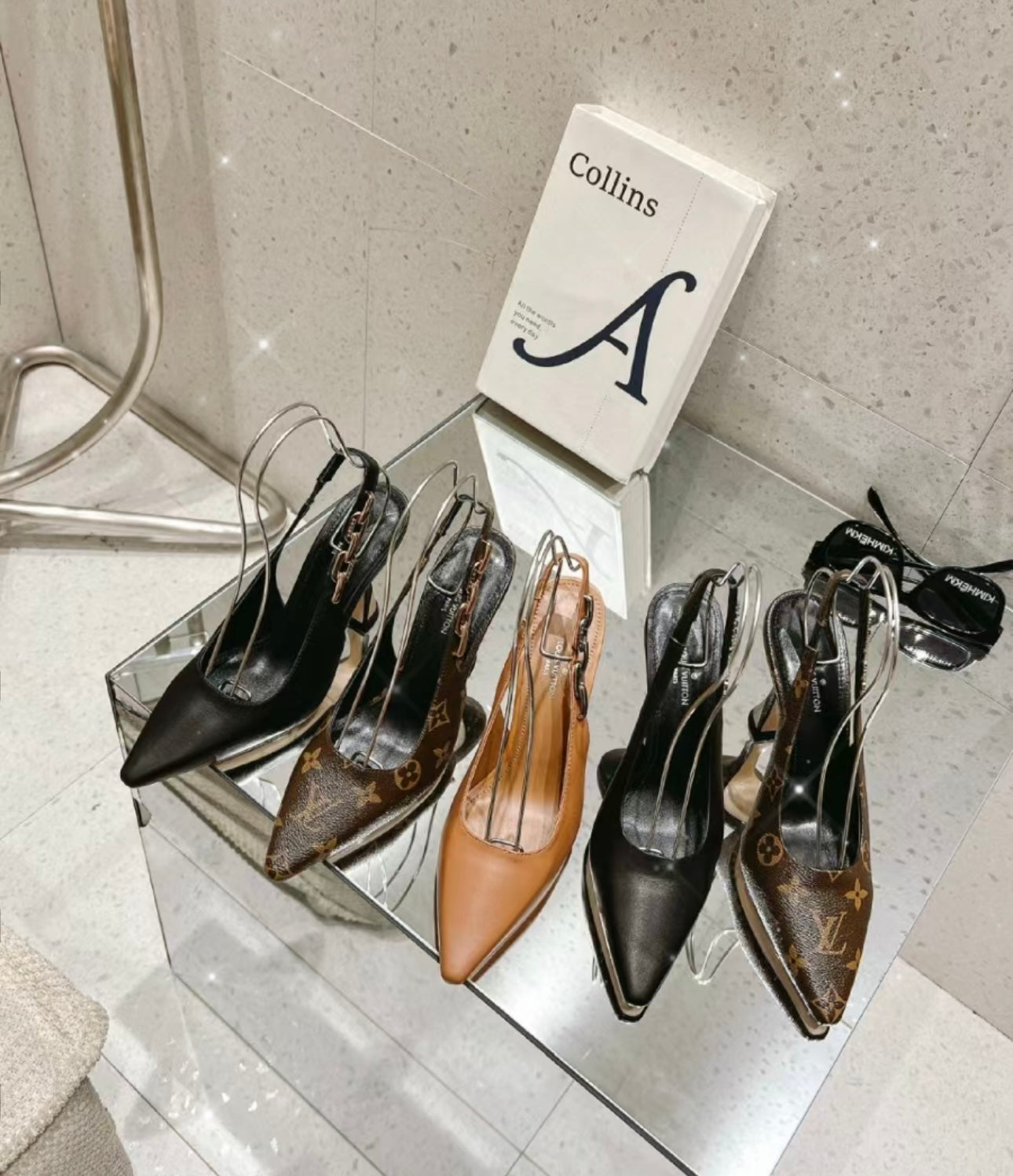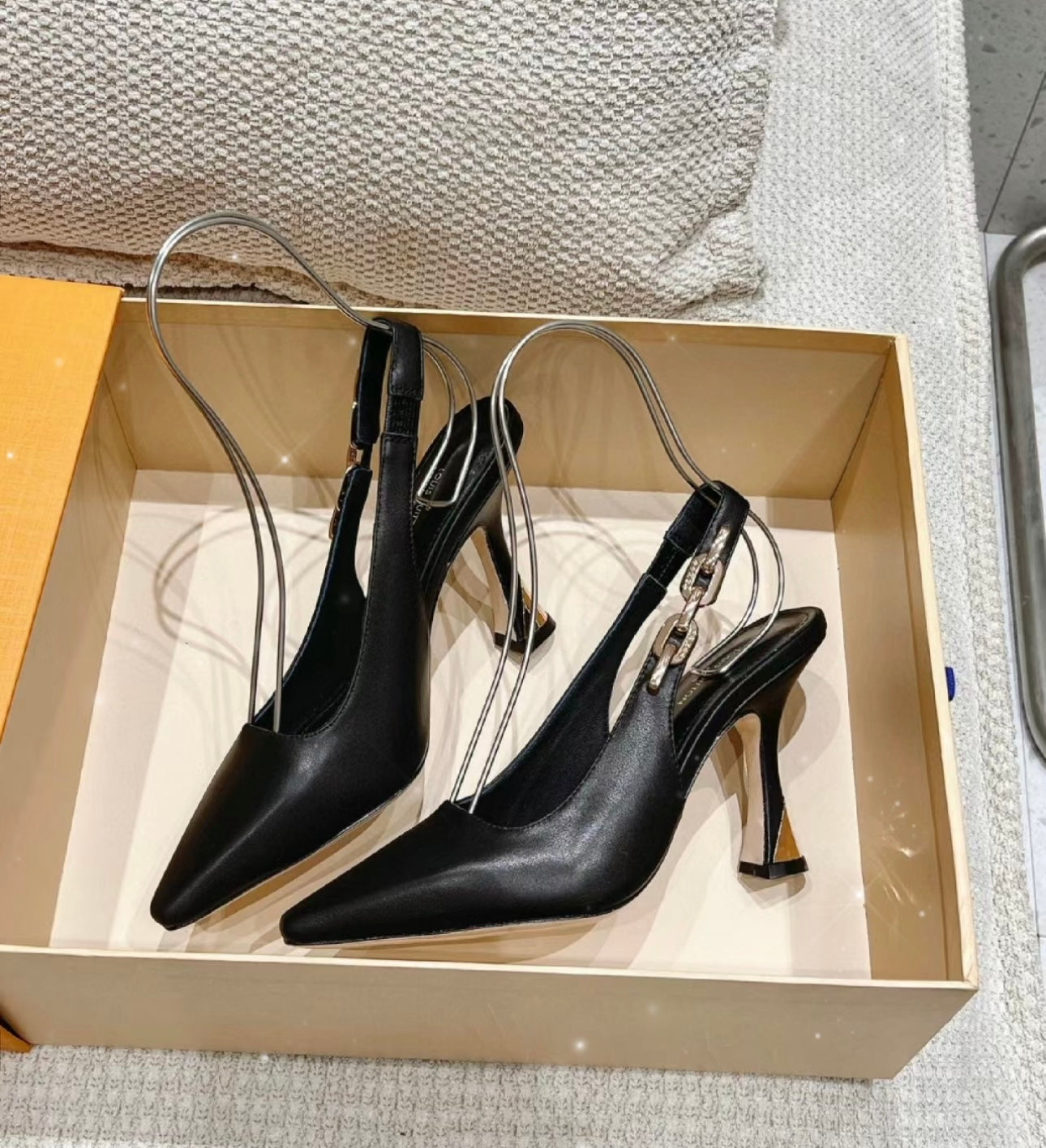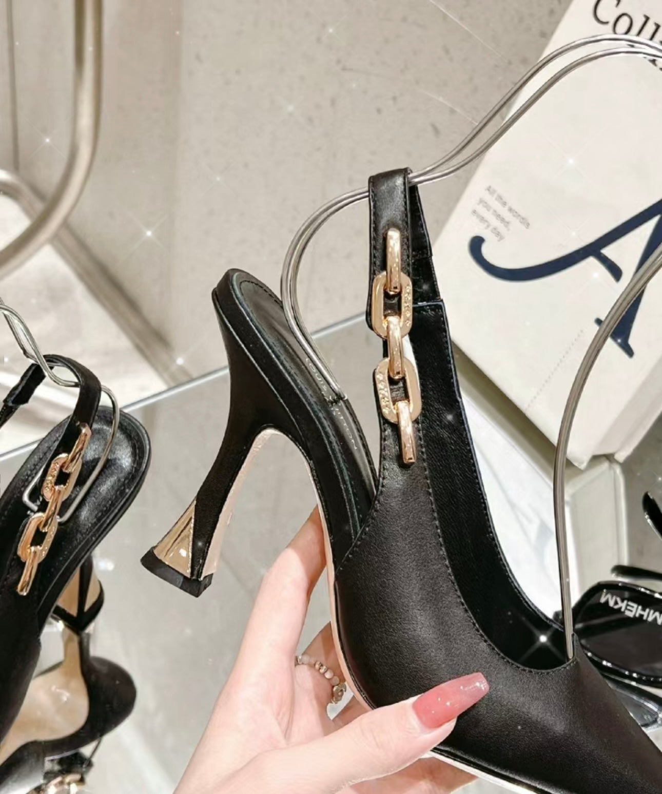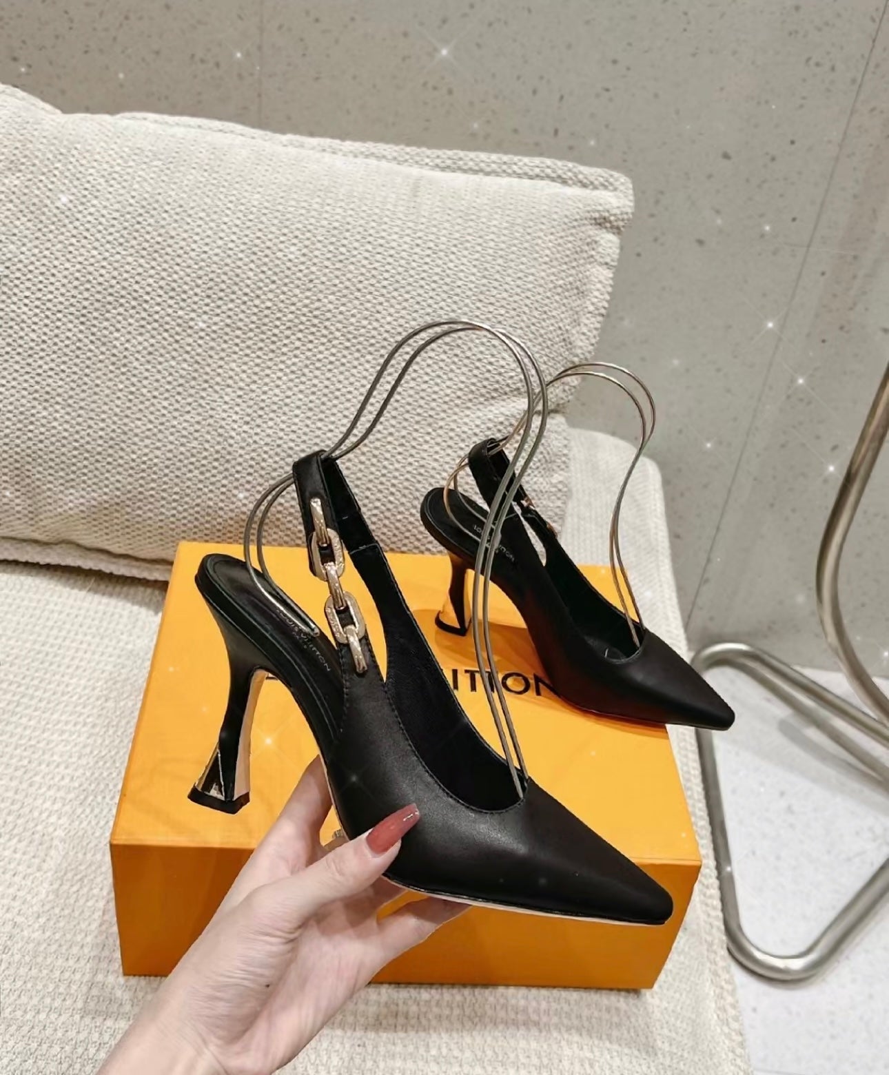 The elegant lines of the Sparkle slingback pump are complemented by smooth calf leather. Key features of this model are its feminine pointed toe and flared heel, while the elasticized back strap is embellished with a Monogram-engraved chain inspired by that on the Coussin bag. A supple leather outsole finishes this design.