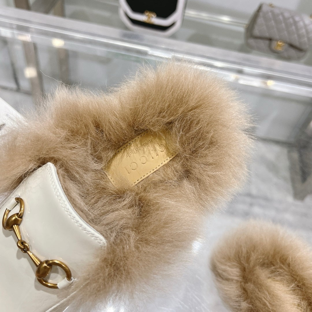Emblematic looks are presented in the Ouverture collection and create a link to Gucci’s rich history. The Princetown slipper is fully lined and trimmed with wool then finished with the House's signature Horsebit detail.