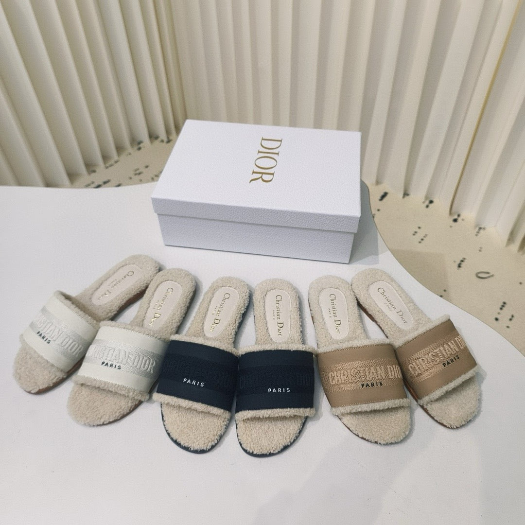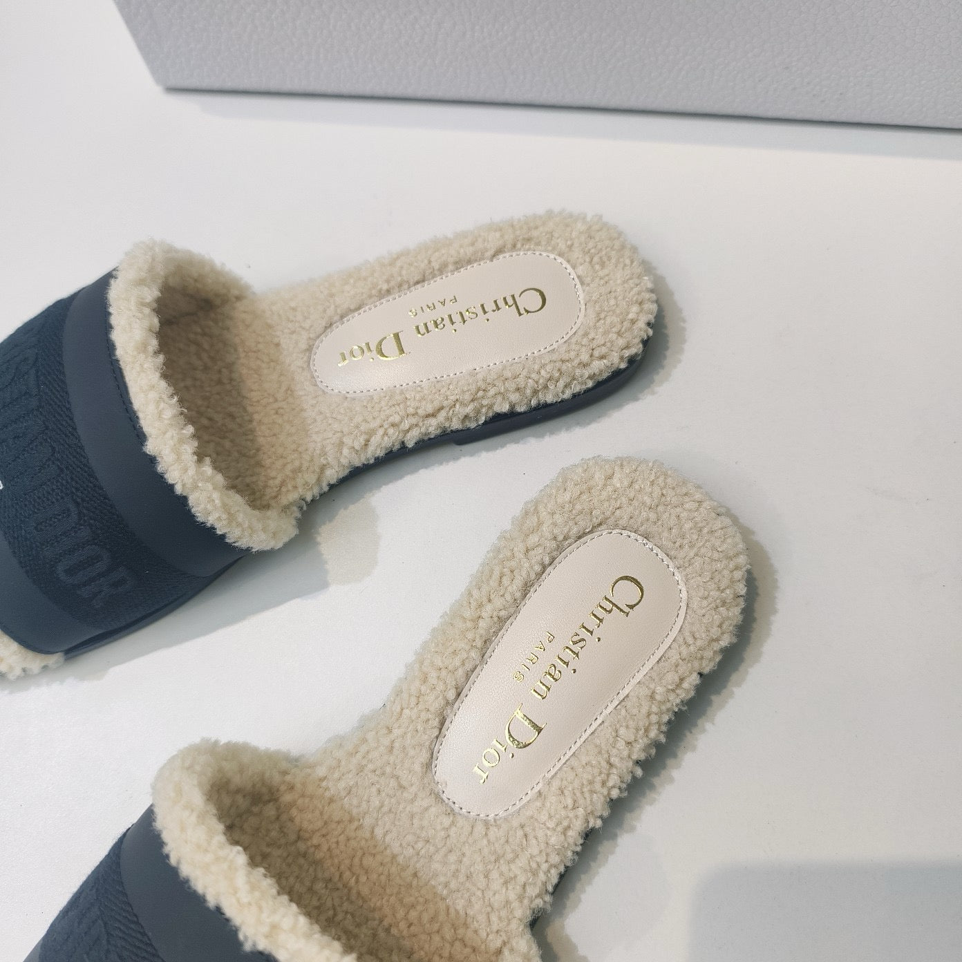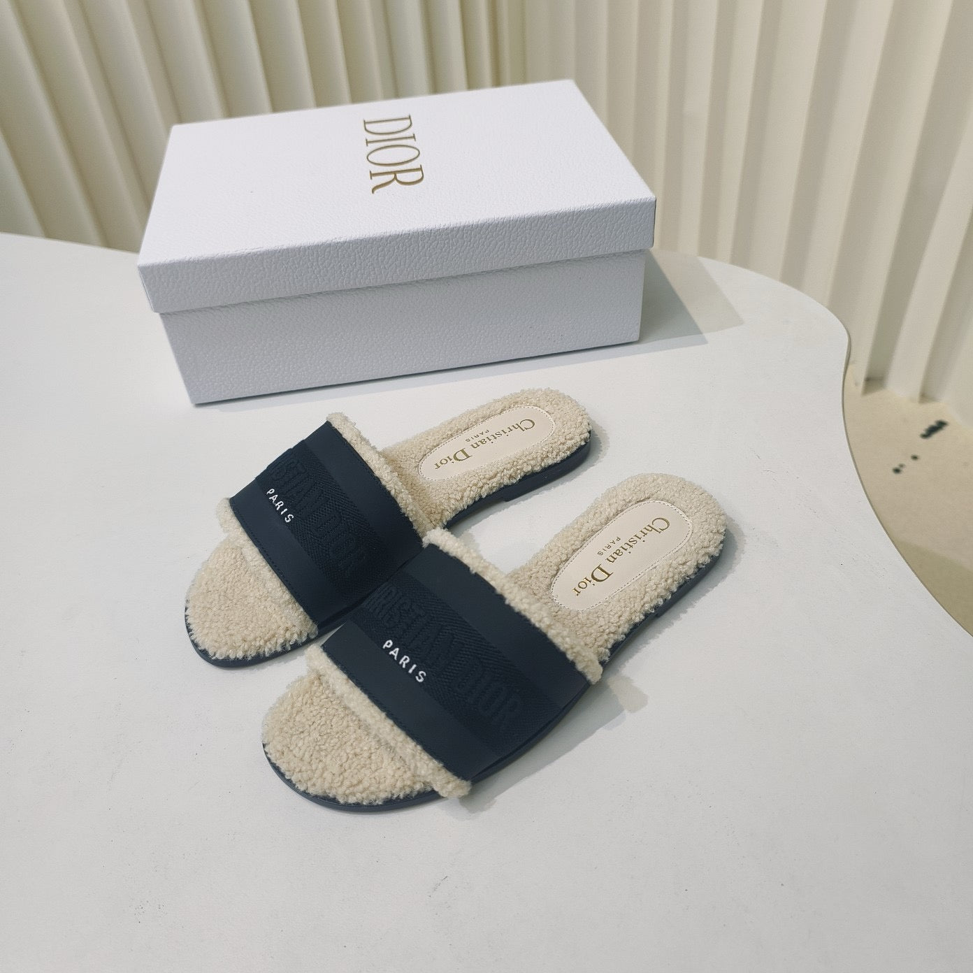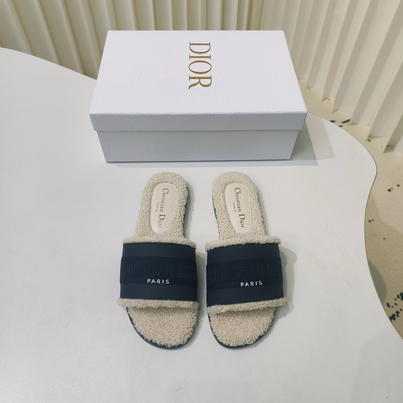 The Dway slide revisits a timeless and emblematic silhouette. The upper in black calfskin and cotton embroidered with the Christian Dior Paris signature instantly stands out. The white sheepskin-effect lining and insole offer ultimate comfort. Its streamlined design allows it to be easily slipped on to complete a laid-back outfit.