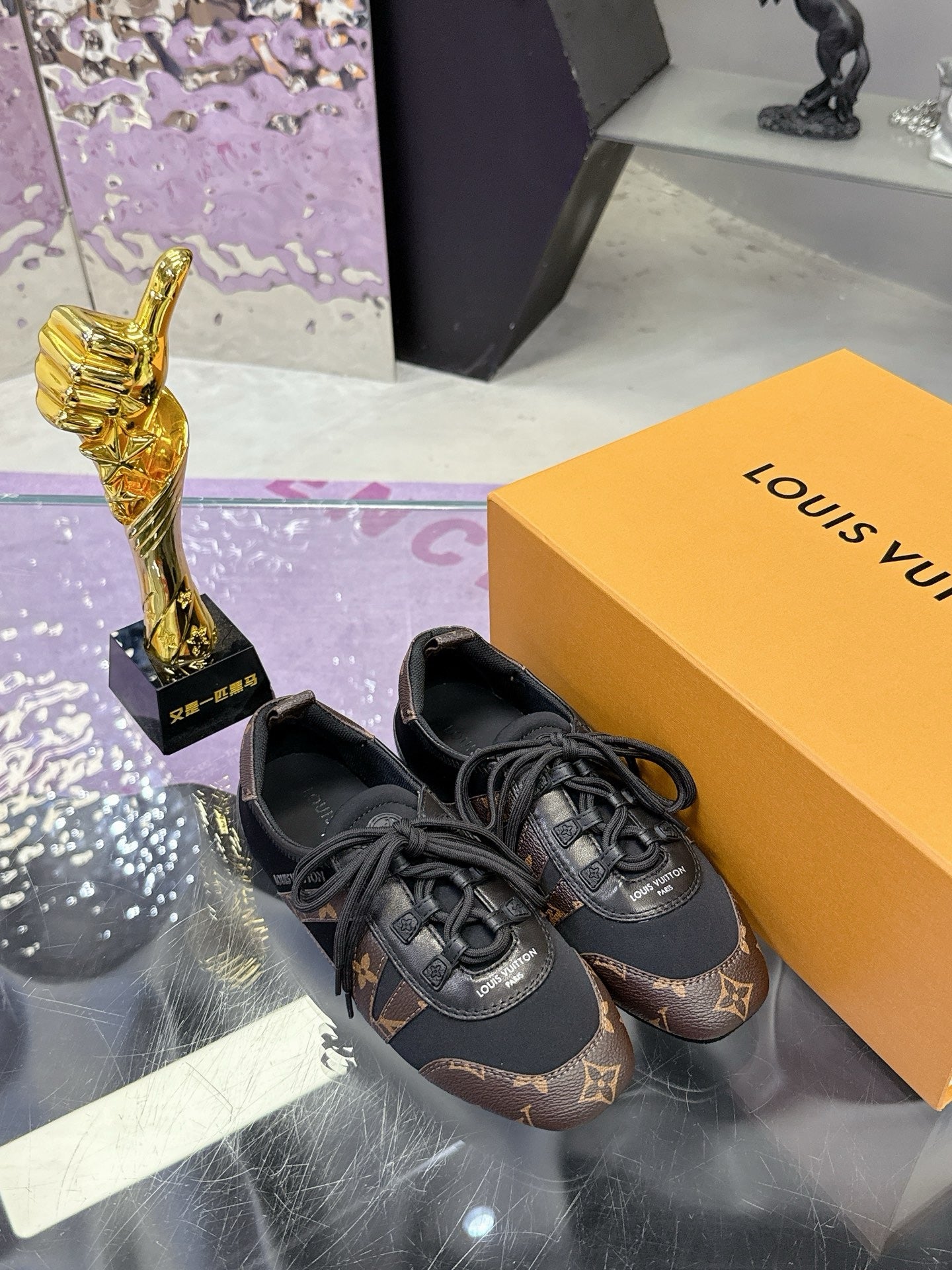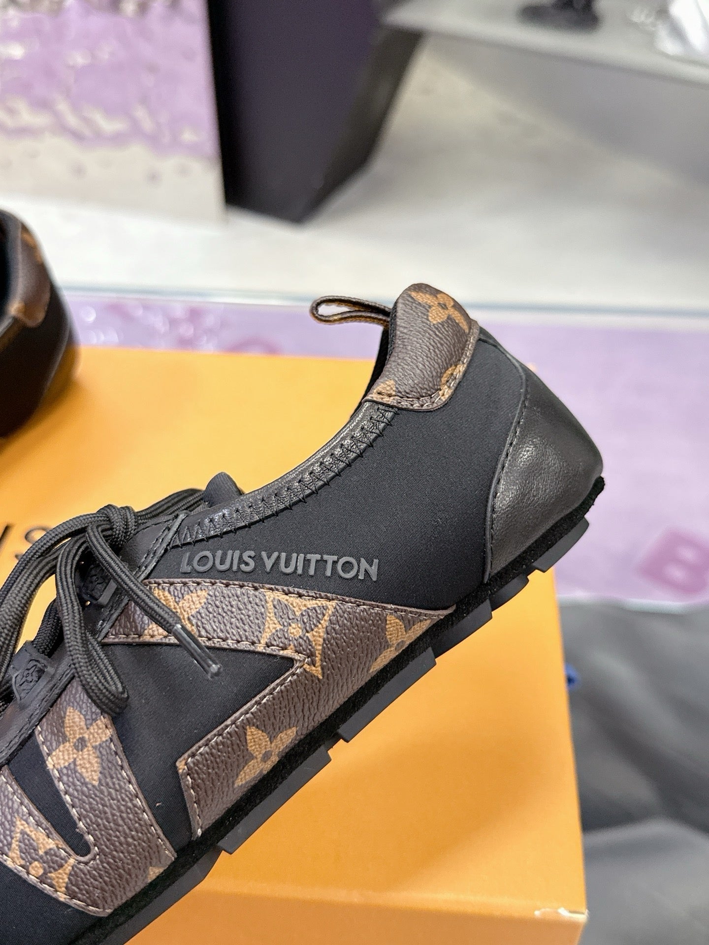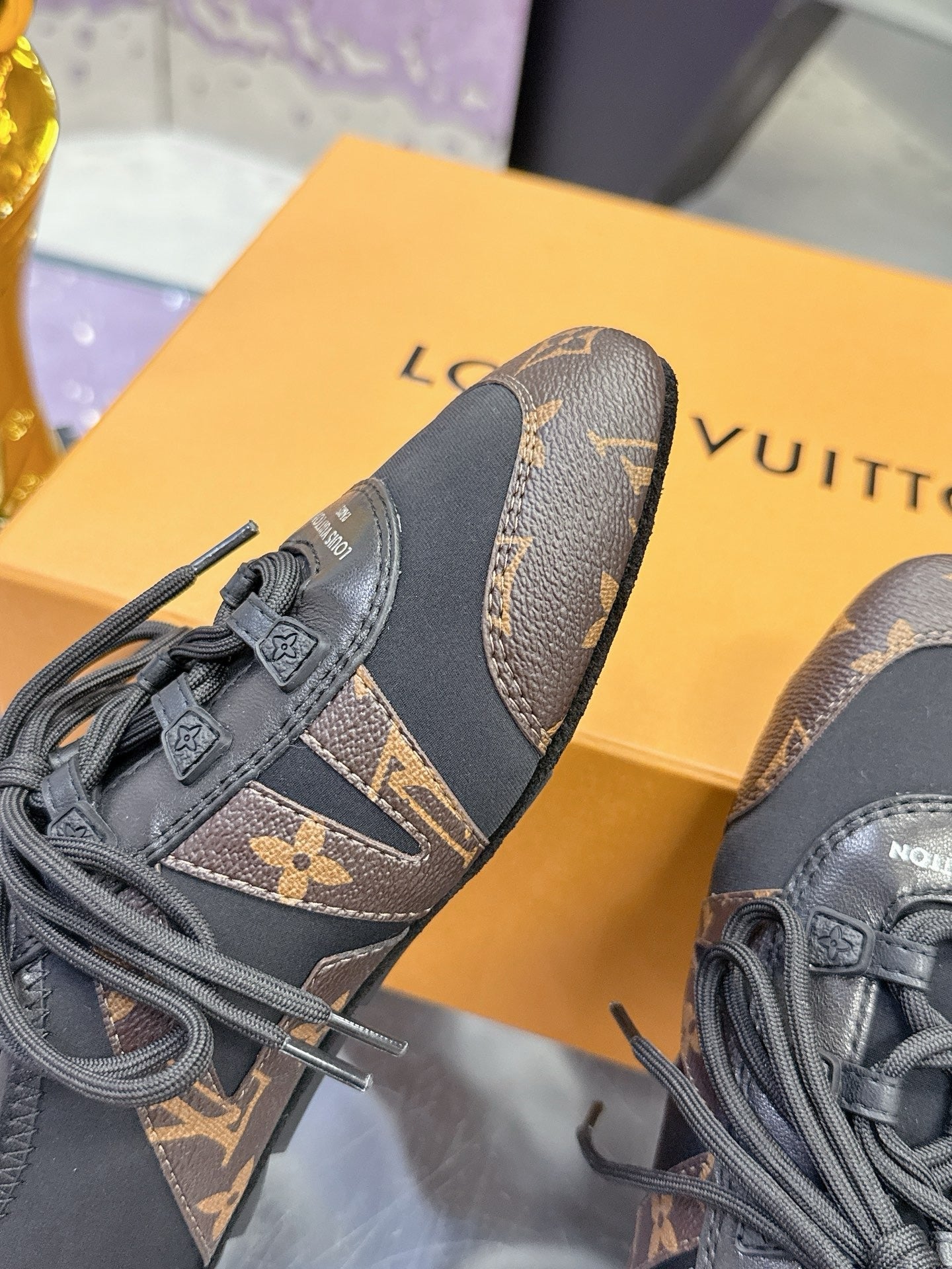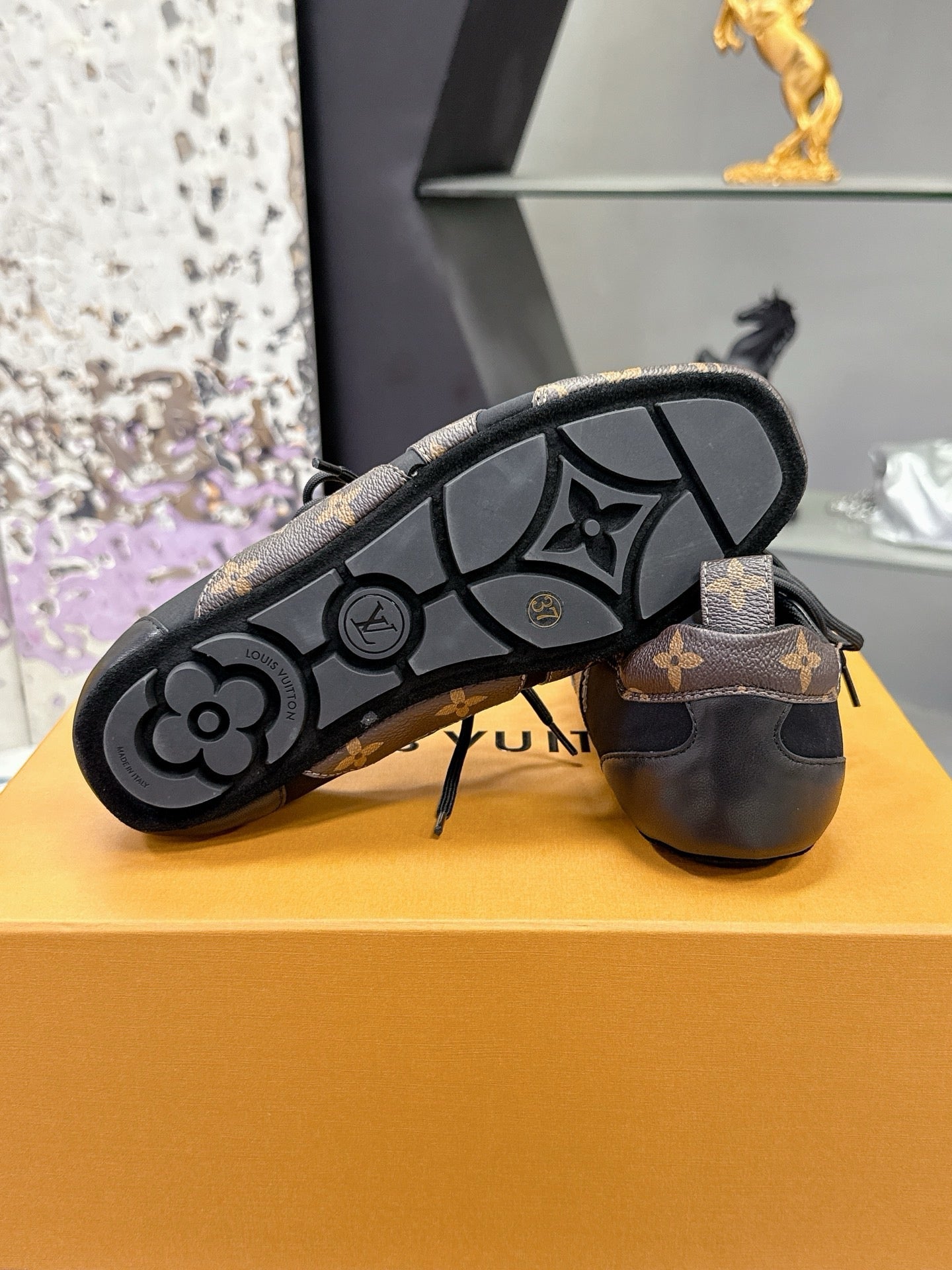 The LV Sneakerina is a fashion-forward style combining the qualities of a sneaker and a ballerina. This version comes in metallic grained calf leather with contrasting trim, including an LV signature on the side. Stylish and versatile, this model features a sacchetto construction, a testament to Louis Vuitton craftsmanship, and TPU outsole for lightness and suppleness. If you are in-between sizes, order one size down.