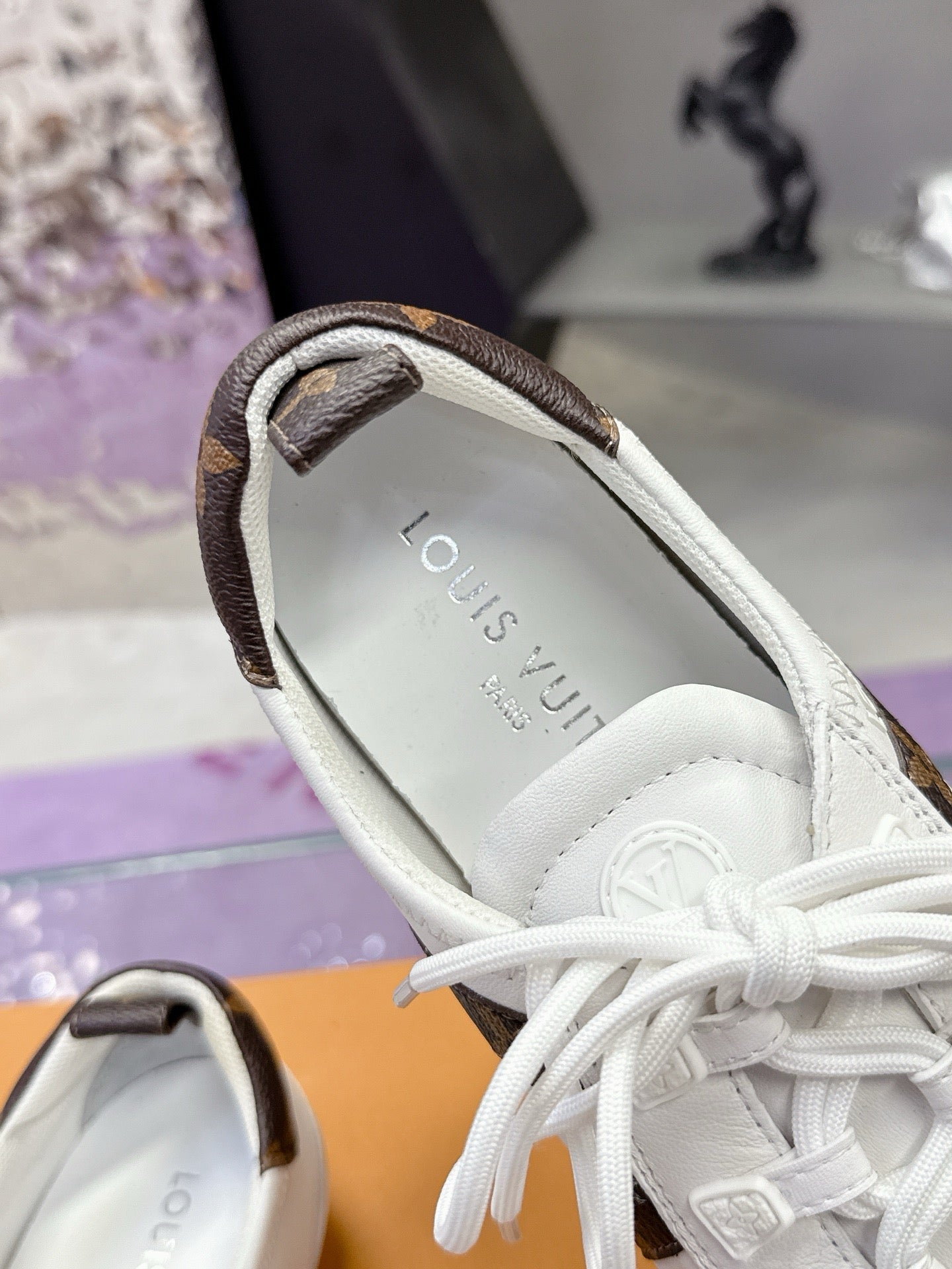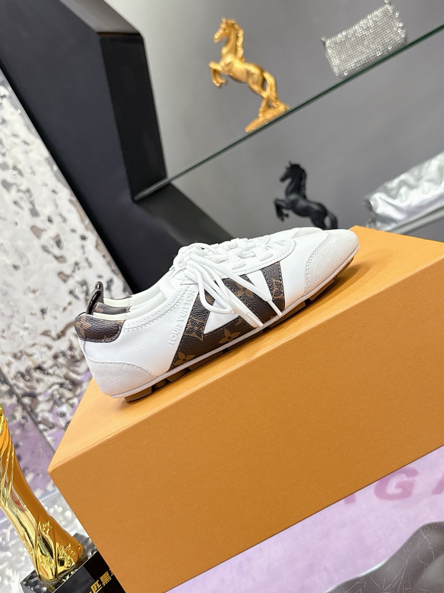 The LV Sneakerina is a fashion-forward style combining the qualities of a sneaker and a ballerina. This version comes in metallic grained calf leather with contrasting trim, including an LV signature on the side. Stylish and versatile, this model features a sacchetto construction, a testament to Louis Vuitton craftsmanship, and TPU outsole for lightness and suppleness. If you are in-between sizes, order one size down.