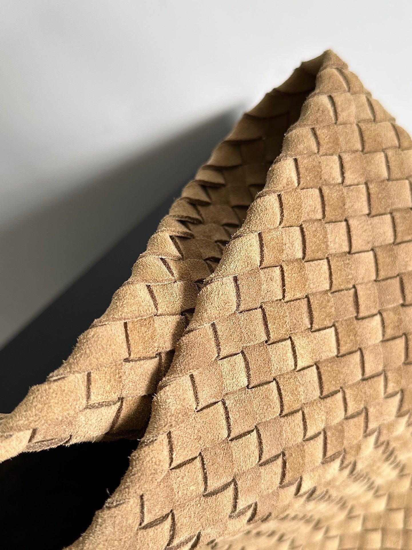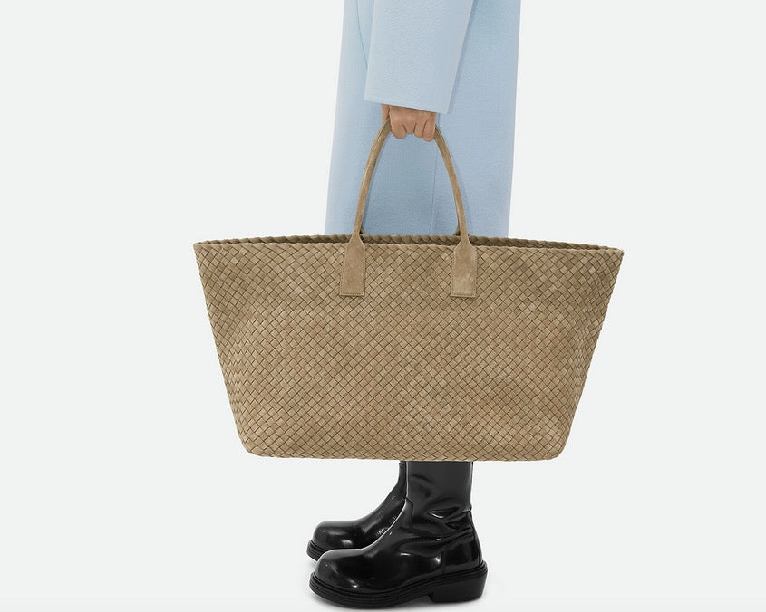 Timeless tote bag meticulously made from soft suede using Intreccio craftsmanship.