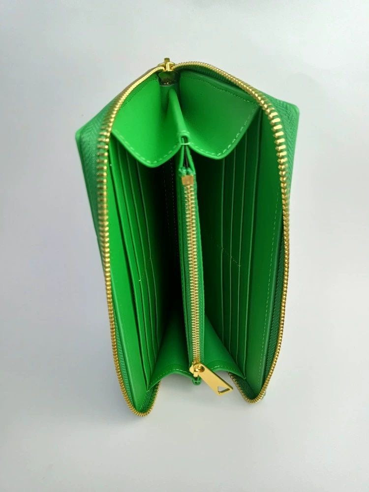 • Twelve card slots, two bill compartments, two additional pockets, one zippered coin purse