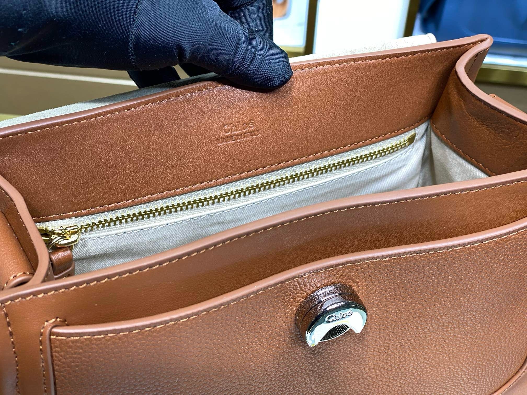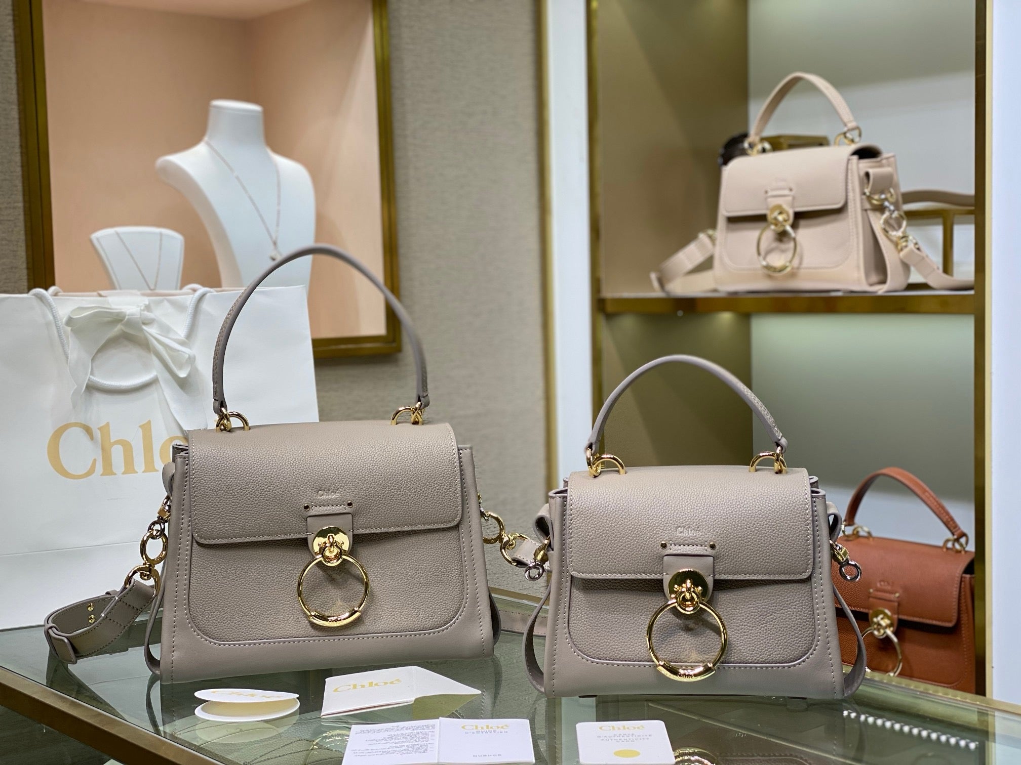 Crafted from an elegant combination of grained calfskin and shiny calfskin, this Tess mini bag is a practical day bag with multiple pockets and a roomy interior despite the compact design. The striking front loop showcases Chloé's "O" signature.