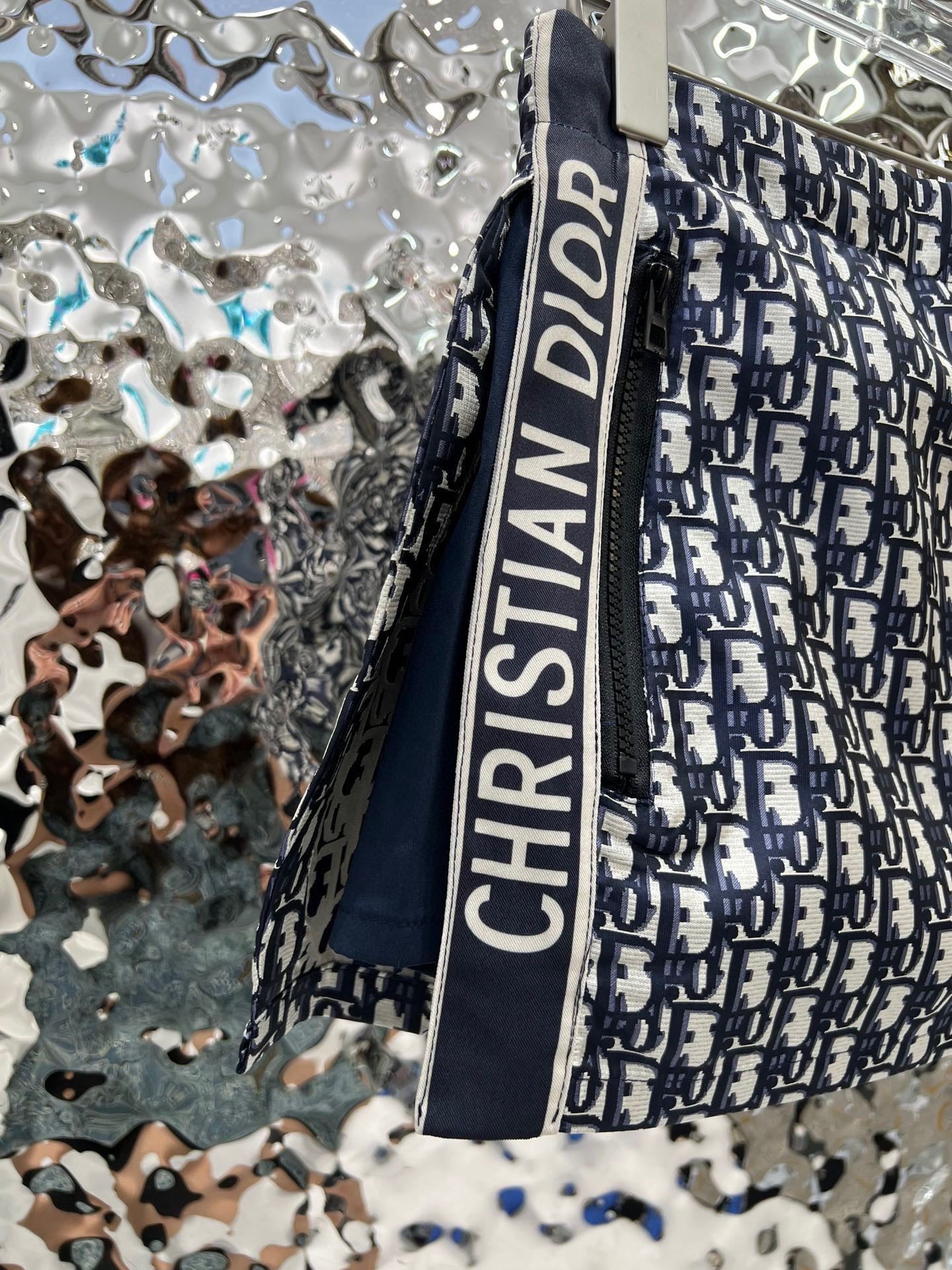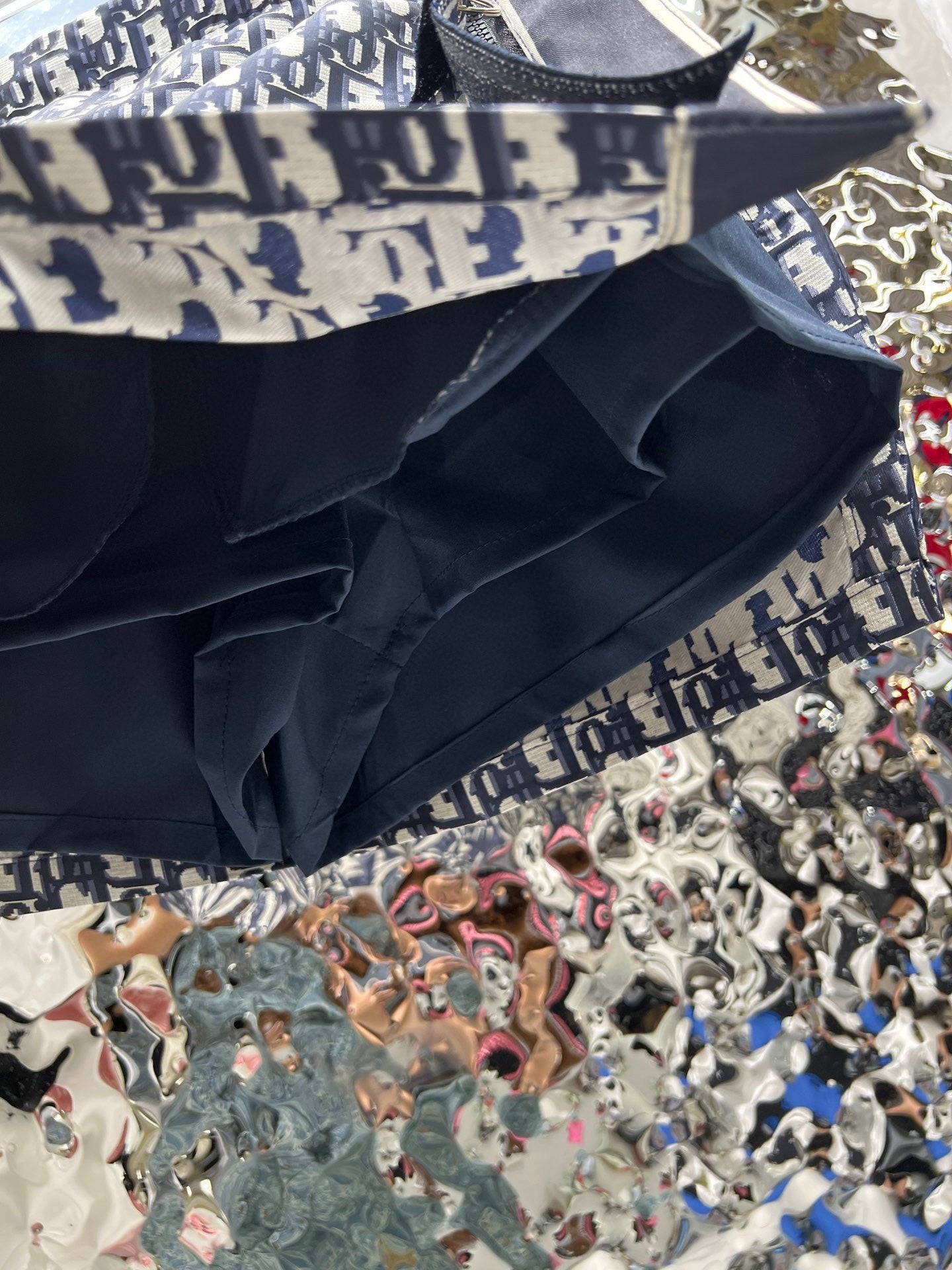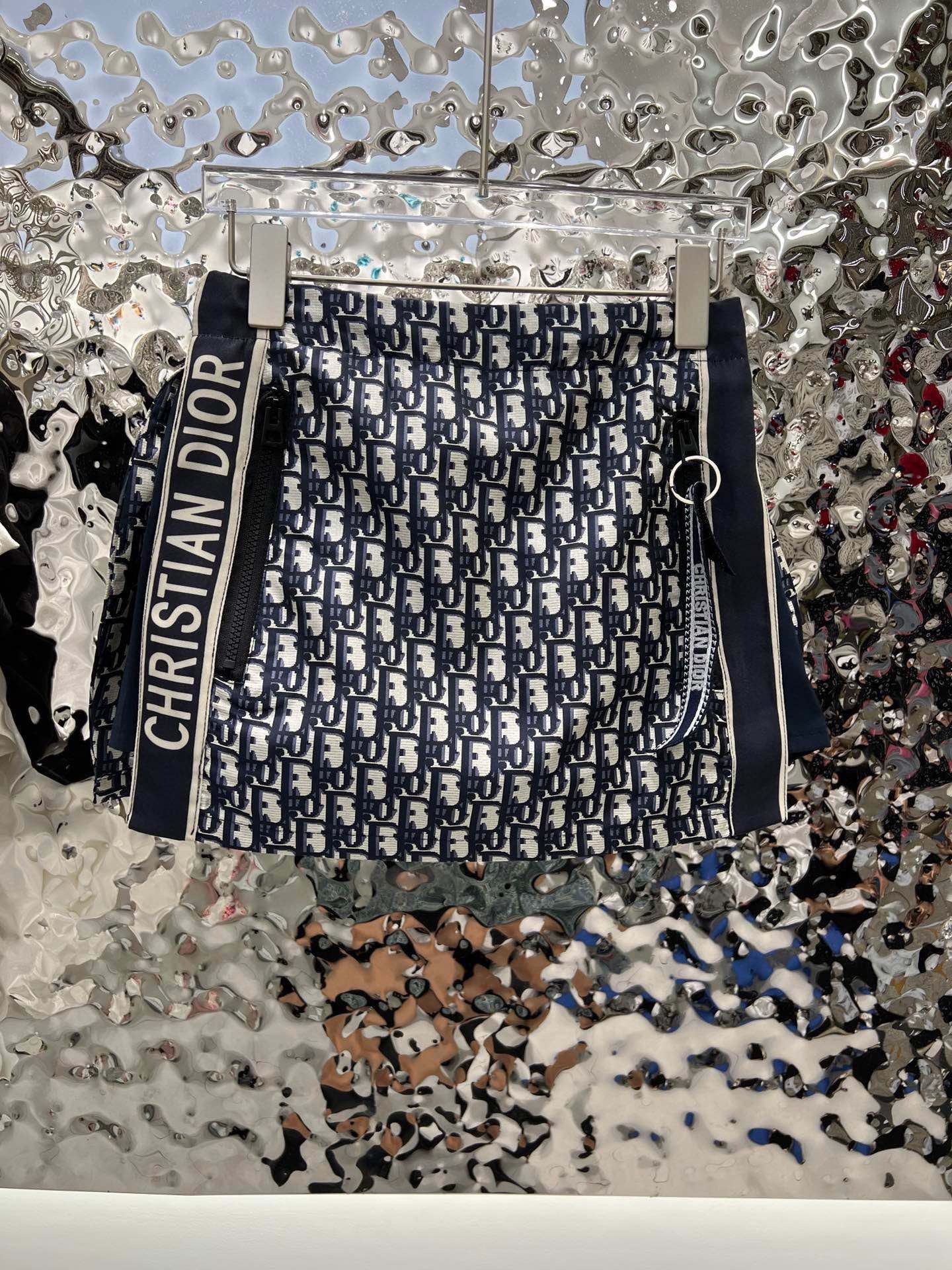 The miniskirt is a staple silhouette of the collection and highlights the hallmark DR Oblique motif. Crafted in cornflower blue technical taffeta jacquard, the design has a flared cut enhanced by a contrasting 'CHRISTIAN DR' signature band on the side. The skirt can be coordinated with other DR Oblique creations to complete the look.