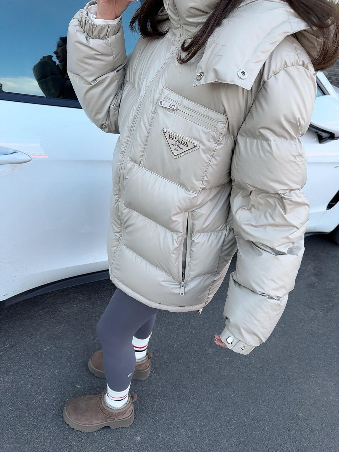 This modular and fluid Re-Nylon down jacket accompanies the body's movements.