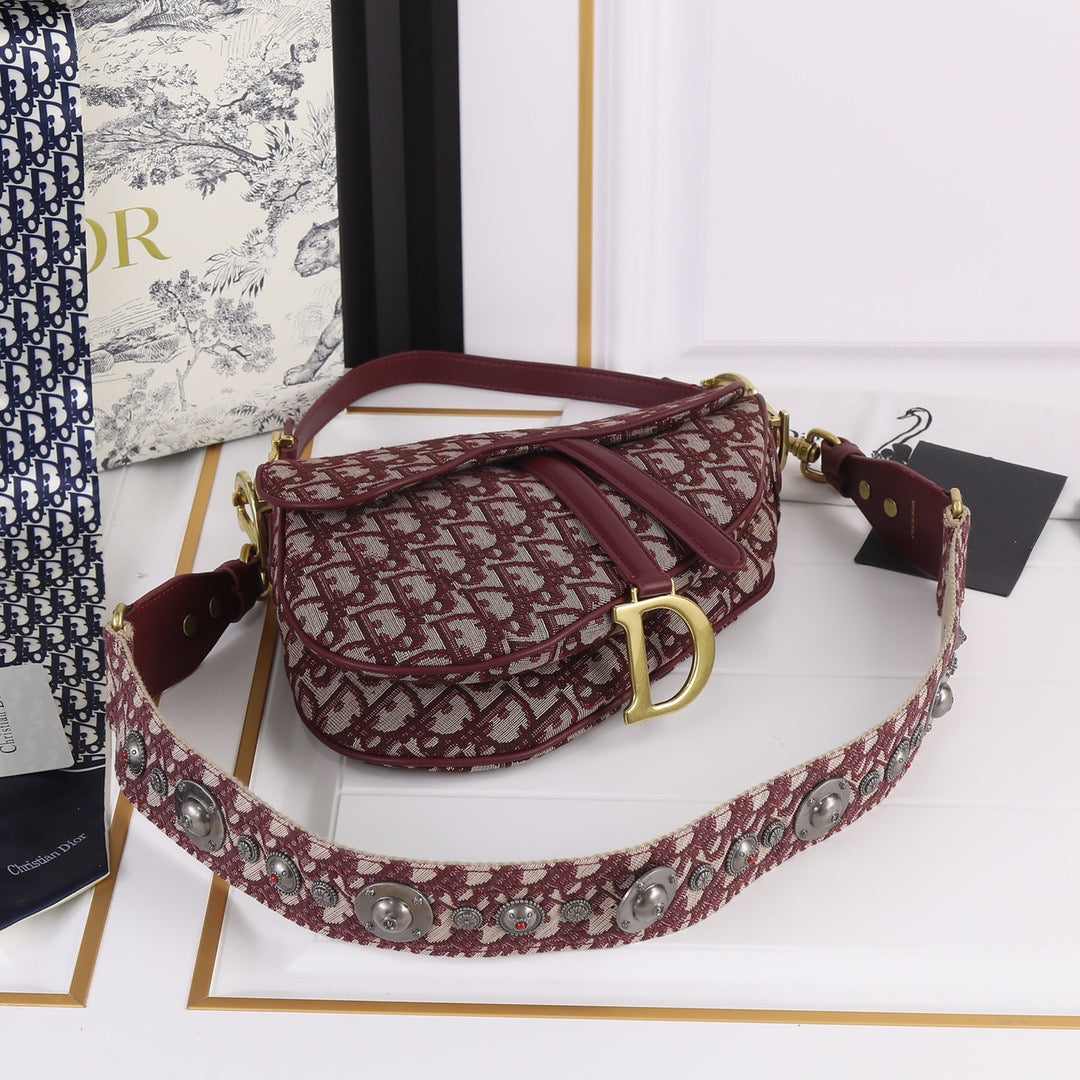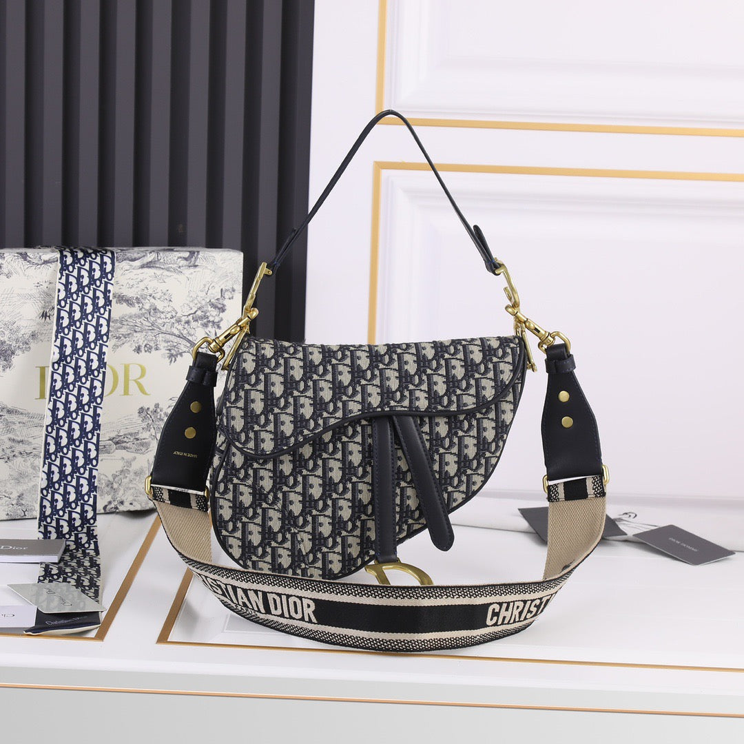 The iconic Saddle bag has been reinvented by Maria Grazia Chiuri. Featuring a Saddle flap with a magnetic 'D' stirrup clasp, it features a 'CD' signature on each side of the handle. The blue Dior Oblique jacquard is embellished with antique gold-finish metal hardware. The Saddle bag may be carried by hand or worn over the shoulder and come with shoulder straps.