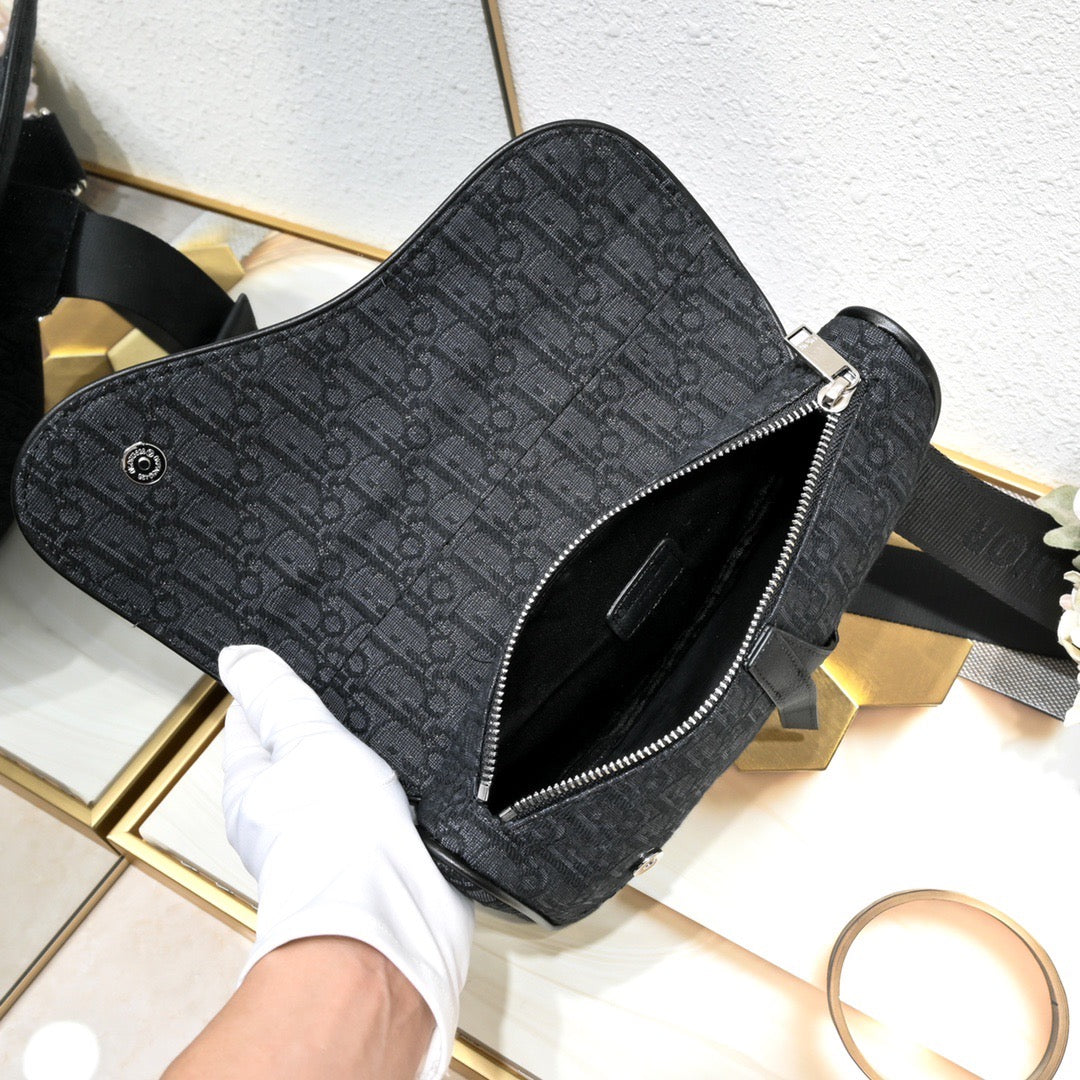 The Saddle bag is distinguished by the emblematic beige and black jacquard Dior Oblique motif. The magnetic flap, with its iconic silhouette, conceals a zip closure to safely store all the essentials. The style may be worn over the shoulder or crossbody with the adjustable Christian Dior shoulder strap.