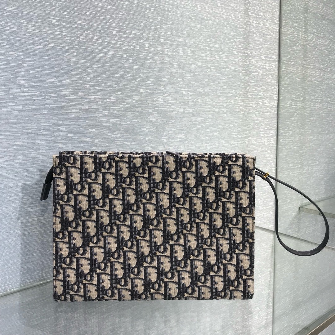 The 30 Montaigne pouch is a timeless and sophisticated accessory. Crafted in blue Dior Oblique jacquard, it features a CD signature on the front. Its spacious interior compartment can hold all the essentials. Its medium structured shape allows it to be carried as a clutch or slipped into a Dior Book Tote.