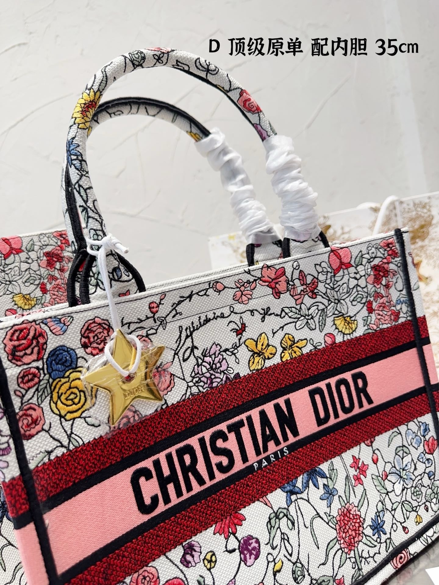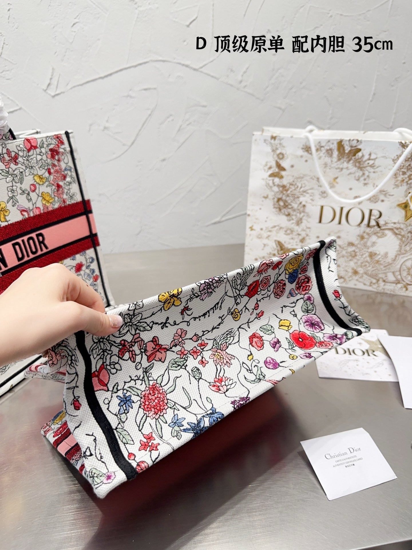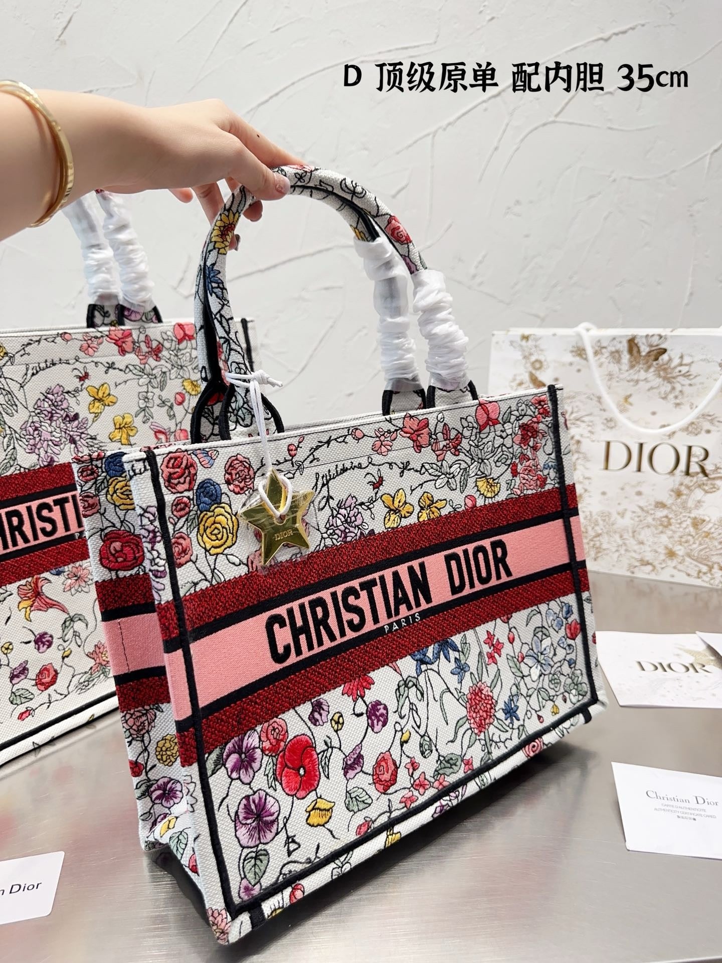 9Introduced by Maria Grazia Chiuri, Creative Director of Christian Dior, the Dior Book Tote has become a staple of the Dior aesthetic. Designed to hold all the daily essentials, the style is fully embroidered with the white multicolor Flowers Constellation motif, embodying a poetic universe full of flowers. Adorned with the Christian Dior Paris signature on the front, the medium tote exemplifies the House's signature savoir-faire and may be carried by hand or worn over the shoulder.
