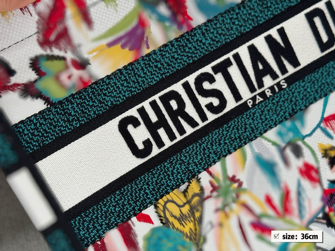 9Introduced by Maria Grazia Chiuri, Creative Director of Christian Dior, the Dior Book Tote has become a staple of the Dior aesthetic. Designed to hold all the daily essentials, the style is fully embroidered with the white multicolor Flowers Constellation motif, embodying a poetic universe full of flowers. Adorned with the Christian Dior Paris signature on the front, the medium tote exemplifies the House's signature savoir-faire and may be carried by hand or worn over the shoulder.