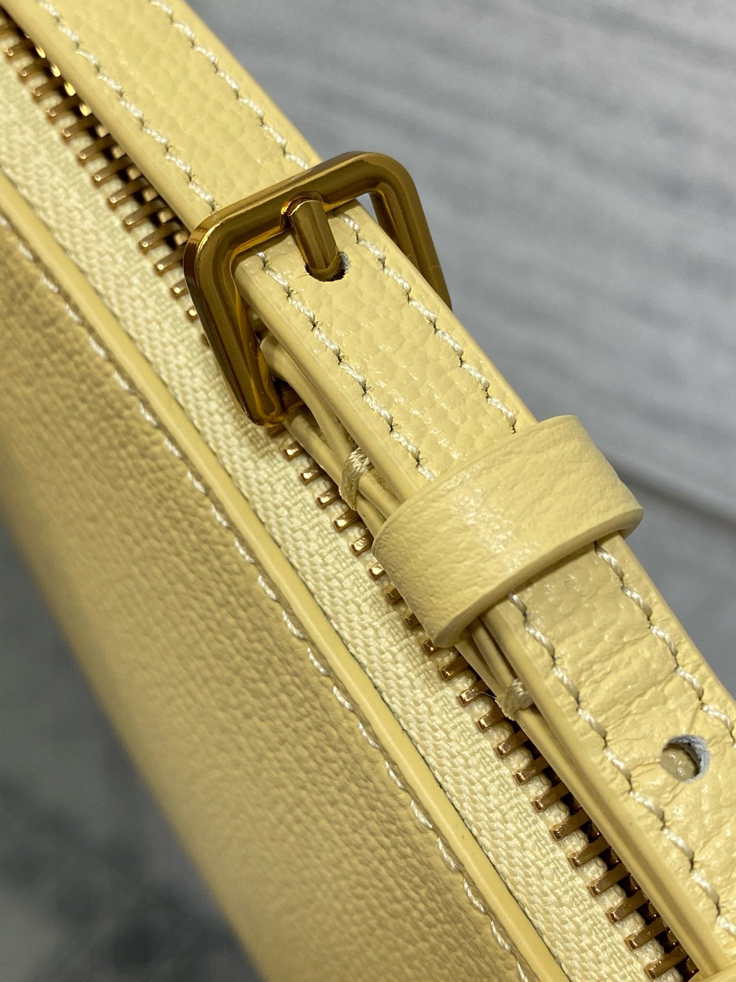 The Saddle Rodeo pouch reimagines the namesake line's hallmark codes, including the antique gold-finish metal D stirrup. Crafted in black goatskin, it features a compact design and a compartment to hold all the essentials with one slip pocket and three card slots. Equipped with an adjustable leather strap, the pouch can be worn over the shoulder for daytime or evening.