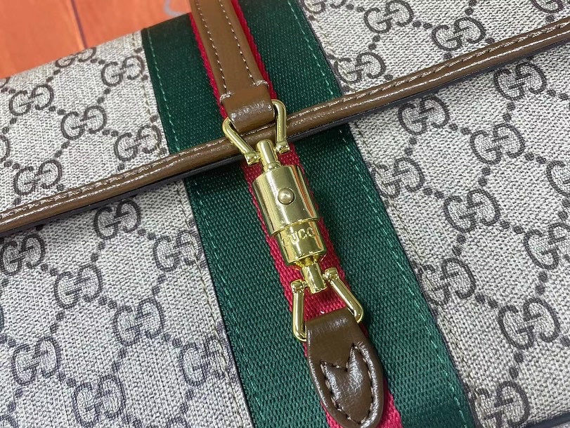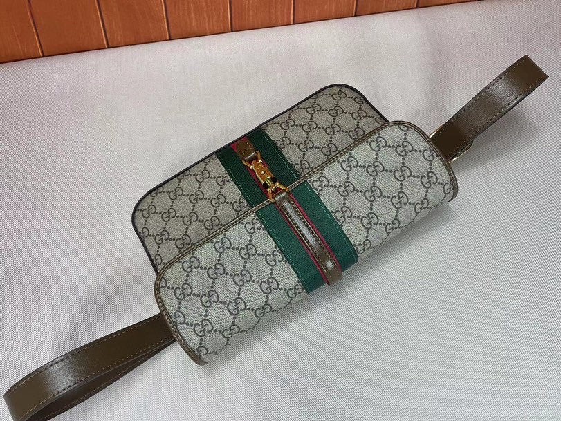 The world of Jackie 1961 evolves as a part of Gucci Love Parade as part of the travel selection. Introduced as a belt bag silhouette, the style is presented in classic GG Supreme canvas with the historic red and green Web. Every season, the Beloved lines come to the fore, each piece recounting a part of the House's history.