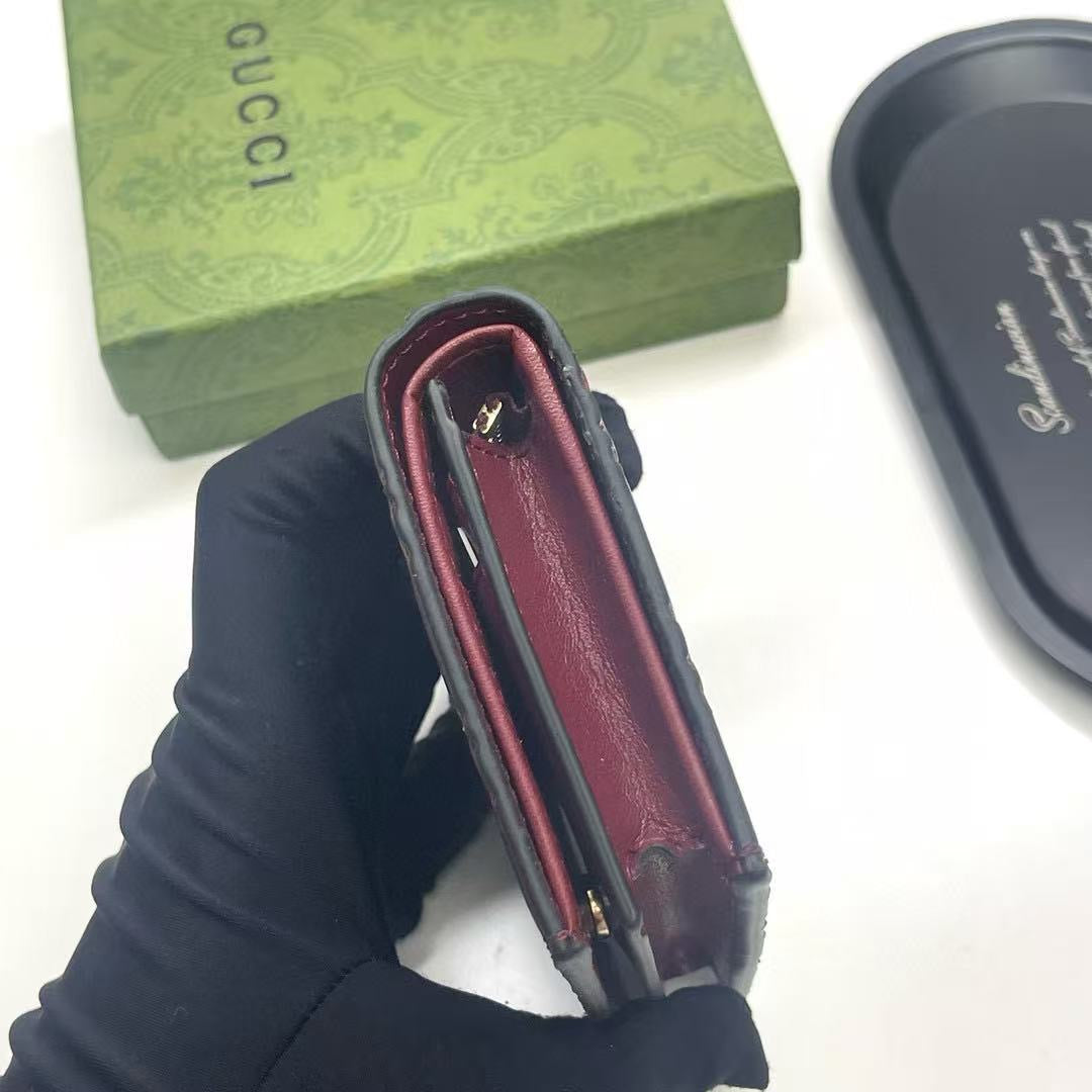 In the Fall Winter 2025 collection, the GG Emblem collection reinterprets the House’s history of elegance and craftsmanship. This small wallet emphasizes functional design with five card slots, one open pocket, one zip pocket, and a bill compartment.