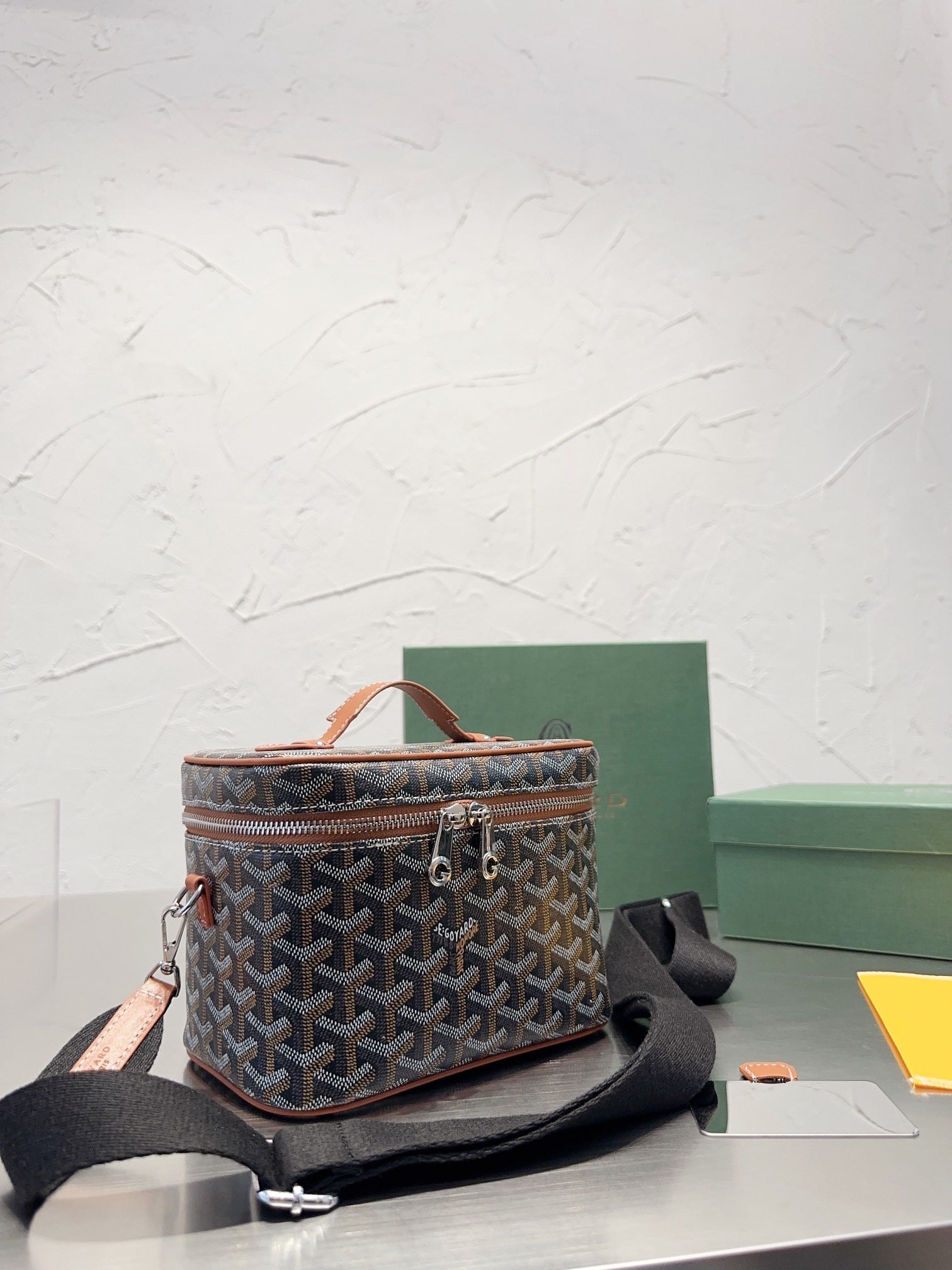 The interior of the Muse vanity case is ingenious with its sliding elastic strap system that keeps bottles and other cosmetics and toiletries safe and secure. With an additional strap it can be worn in several different ways: carried, over the shoulder and across the chest.