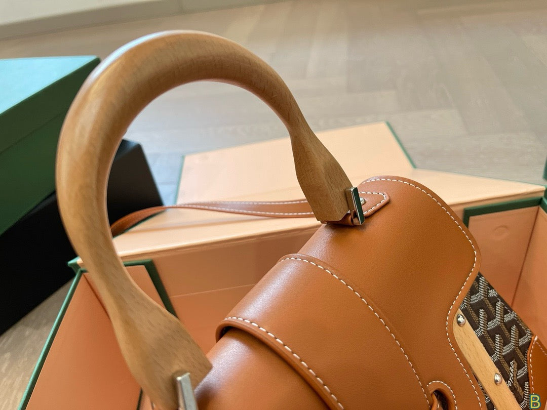 The Saïgon bag is one of Maison Goyard’s emblematic pieces as it inherits all our trunk-making signature codes like the wood batons, leather corners and trunk rivets. In this structured PM format, the Saïgon bag can be worn with or without a strap for an elegant evening style.