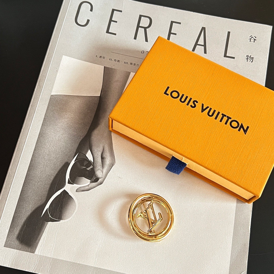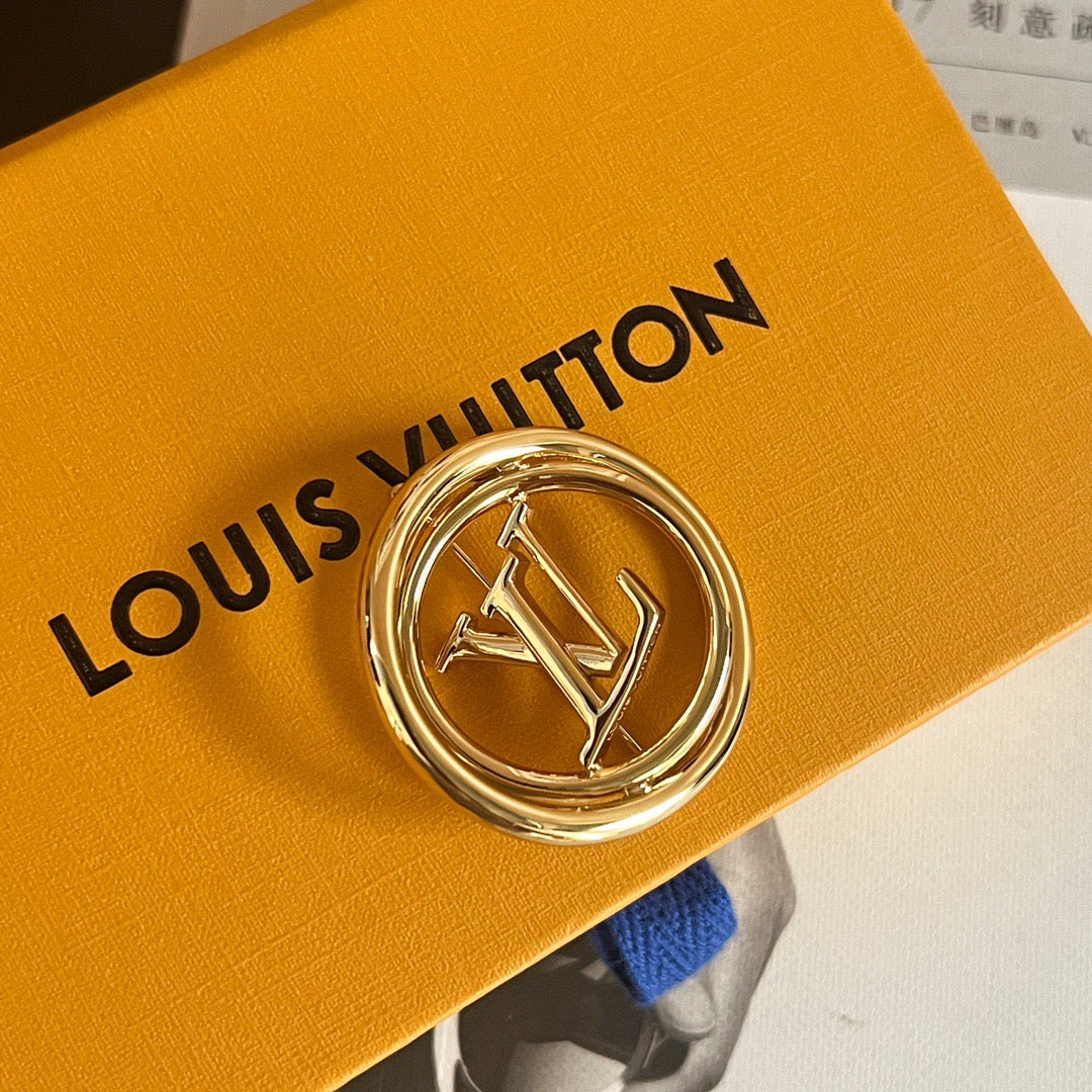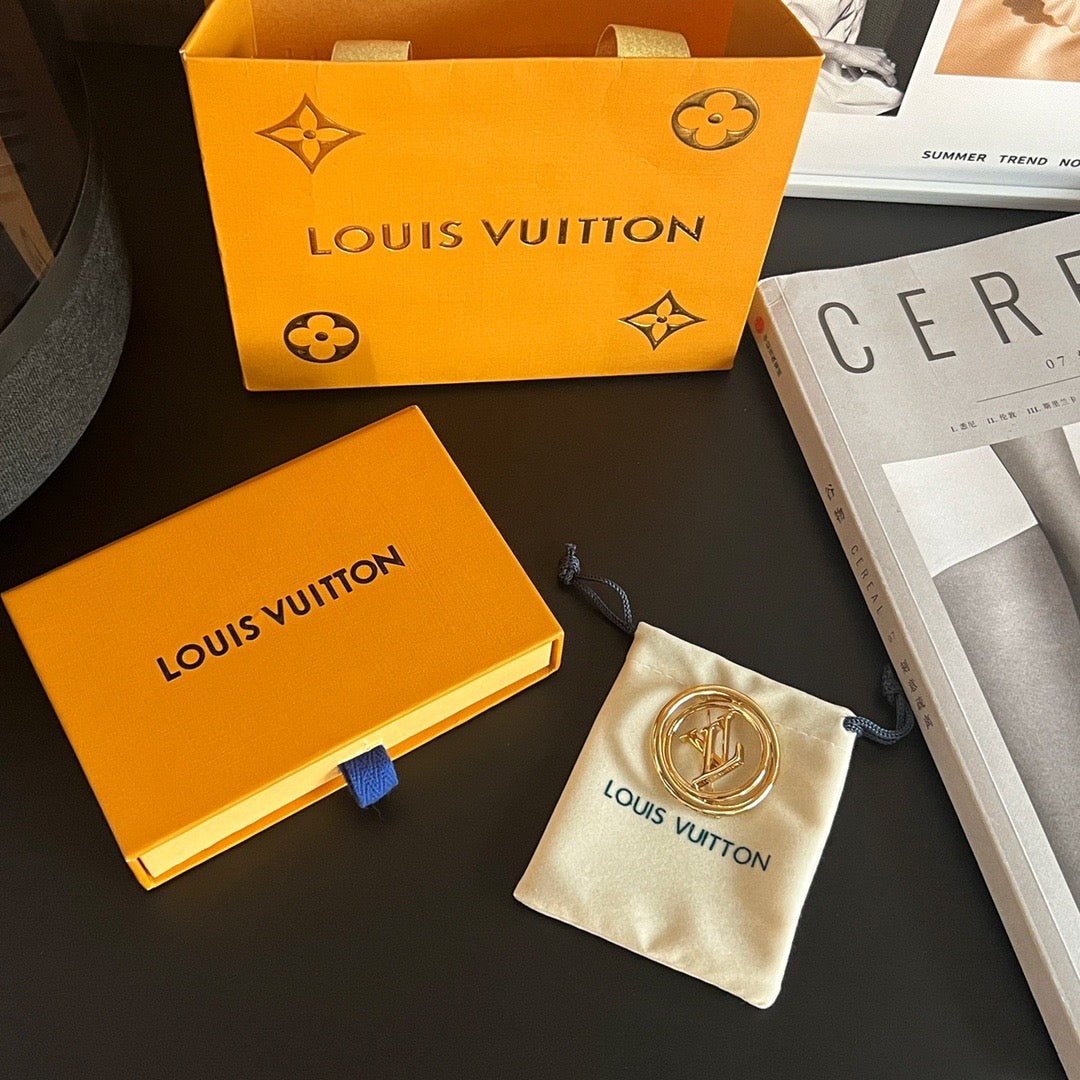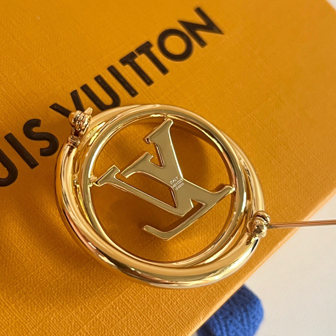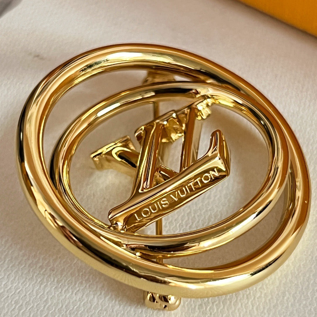 The iconic LV Circle gets a contemporary three-dimensional refresh on the large LV Stellar pin. The motif is presented in a sculptural double circle that lends a sense of vivacity and movement. The gleaming brooch is enhanced with a secure clasp, making it easy to add to a lapel or jacket pocket.