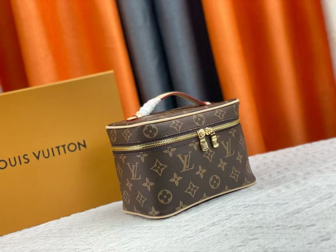 The Nice Mini beauty case in iconic Monogram canvas fits easily into a travel bag or suitcase. Supple, compact, with a leather handle that flattens to save space, it offers good capacity for toiletries and grooming essentials. The top flap opens wide for optimal visibility, thanks to a double-zip closure, ornamented with LV-engraved metal pulls.