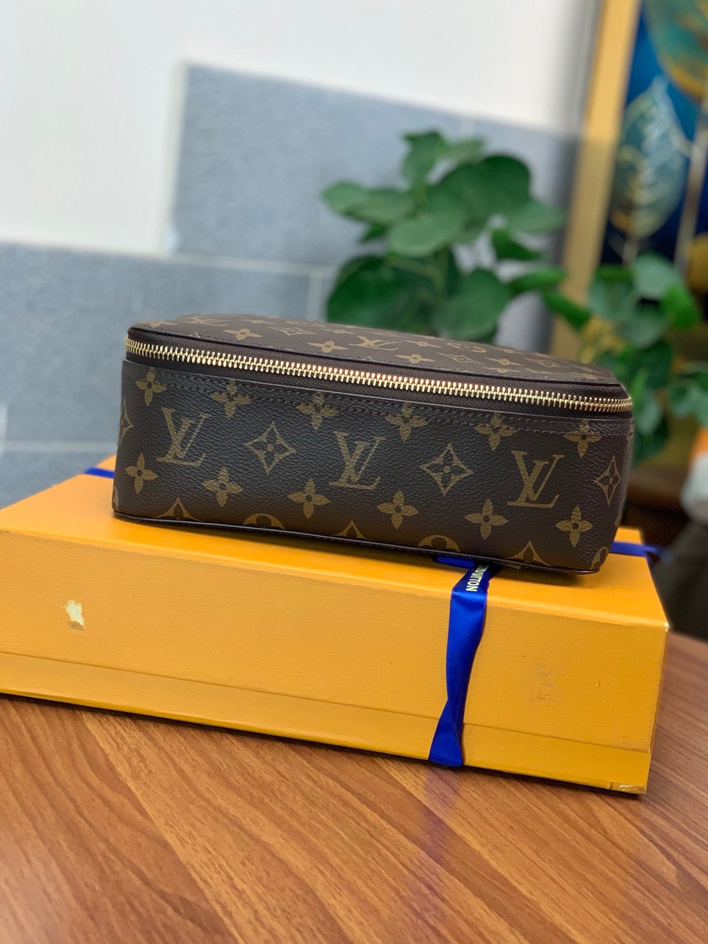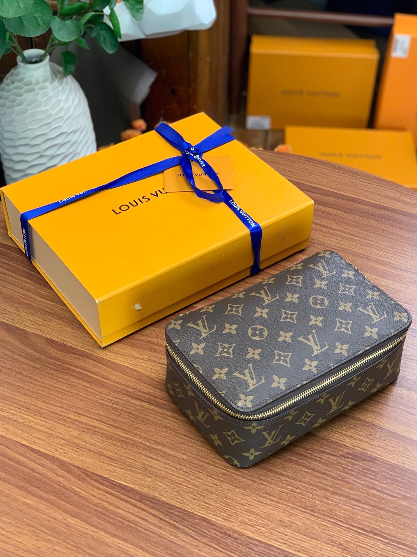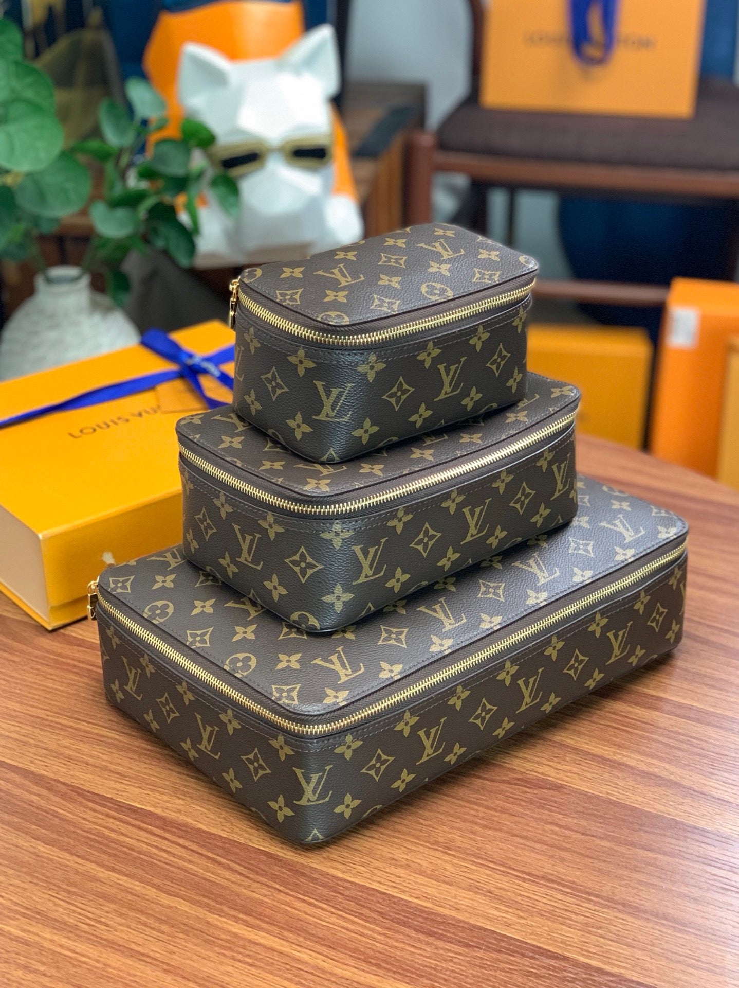 The Packing Cube PM( 6.69 x 3.15 x 4.72 inches ) in Monogram canvas with natural-leather trim is Louis Vuitton’s latest contribution to the Art of Packing. The perfect size for accessories, it easily holds stoles, bandanas, ties or underwear. Although designed for organizing the interior of luggage, it can also be used store items upon arrival.