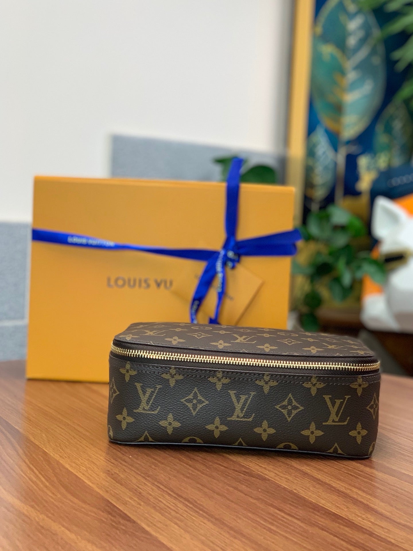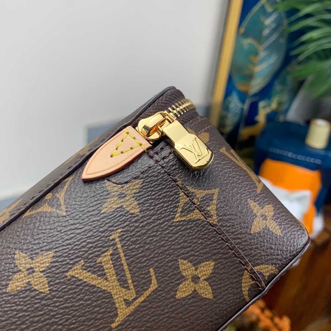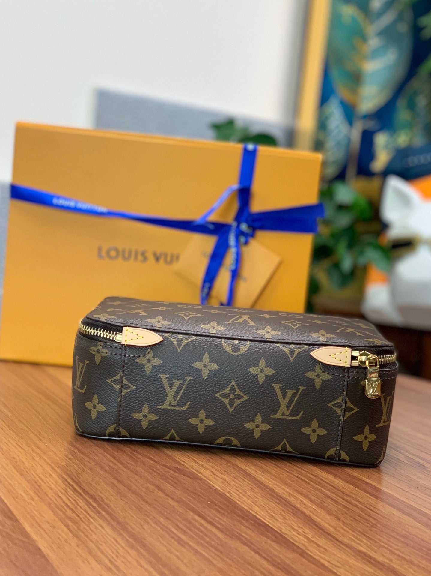 The Packing Cube PM( 6.69 x 3.15 x 4.72 inches ) in Monogram canvas with natural-leather trim is Louis Vuitton’s latest contribution to the Art of Packing. The perfect size for accessories, it easily holds stoles, bandanas, ties or underwear. Although designed for organizing the interior of luggage, it can also be used store items upon arrival.