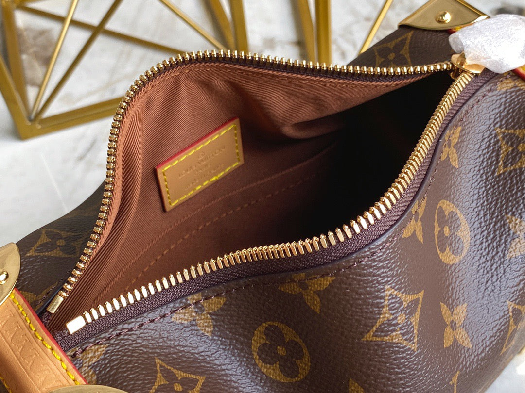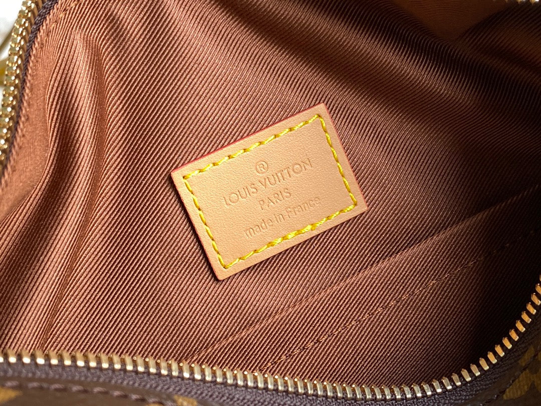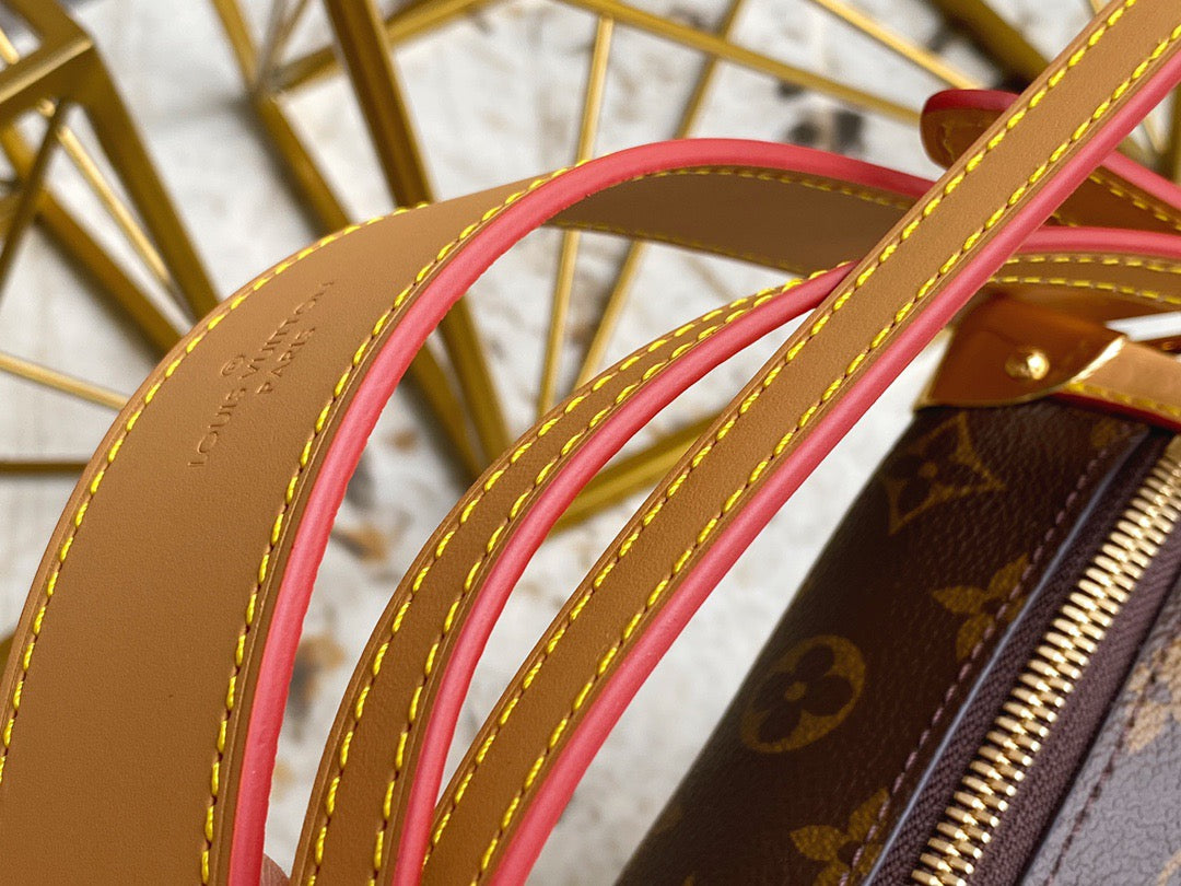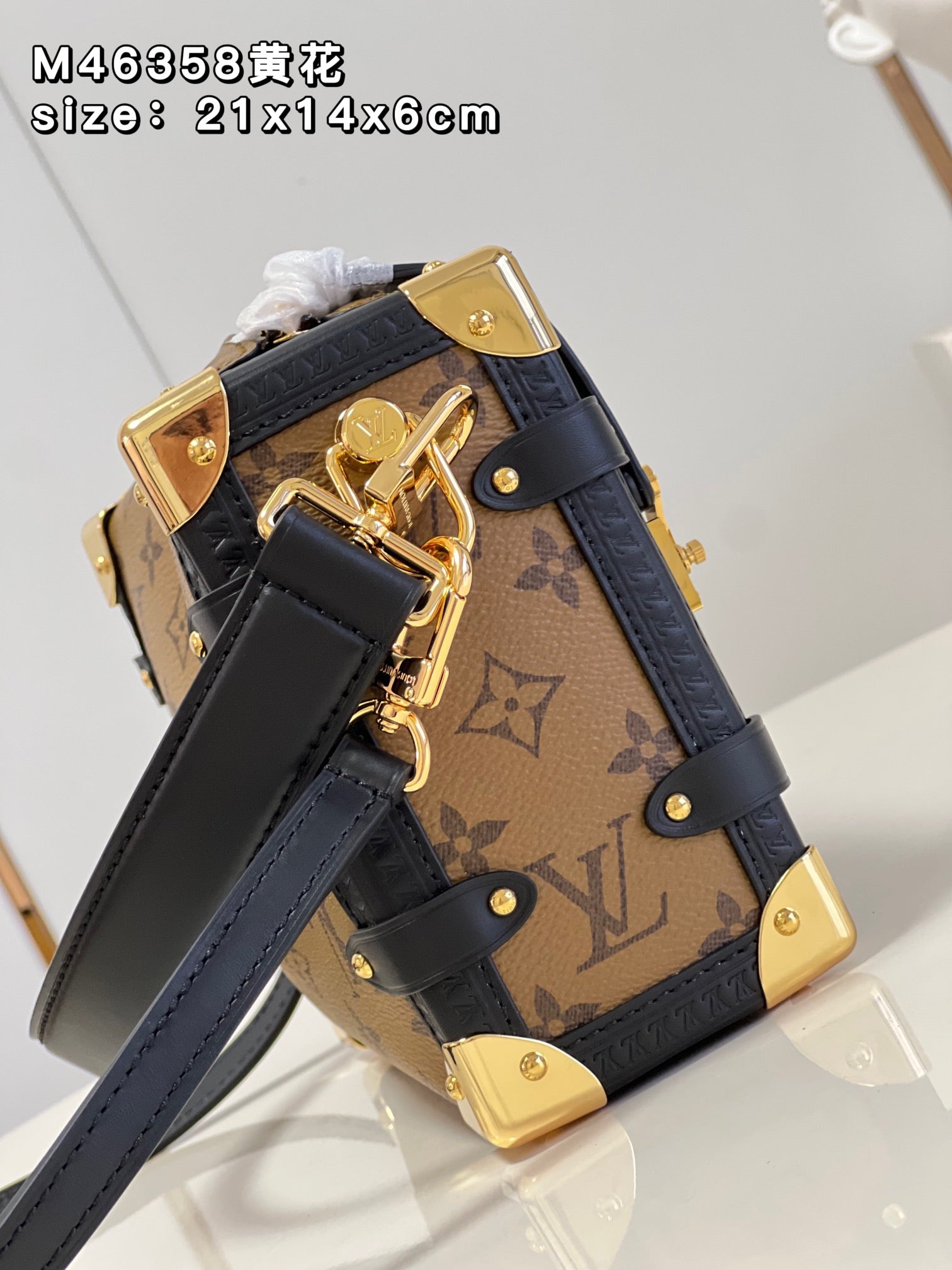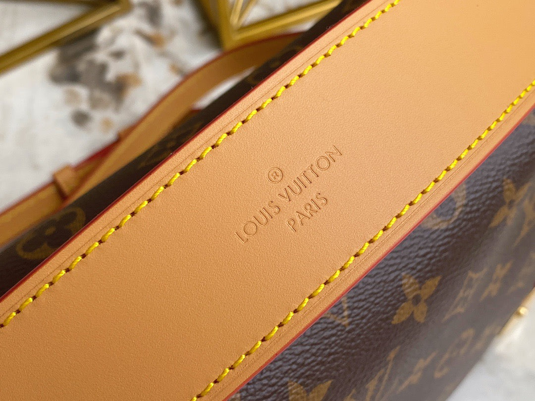 Returning to the House’s trunkmaking beginnings, Nicolas Ghesquière creates the Side Trunk PM handbag in Monogram canvas with leather trim. What strikes the eye is the singularity of the leather zip tab fitted with the iconic S-lock and the reinforced metallic corners. The wide top handle is removable as is the thin leather shoulder strap.