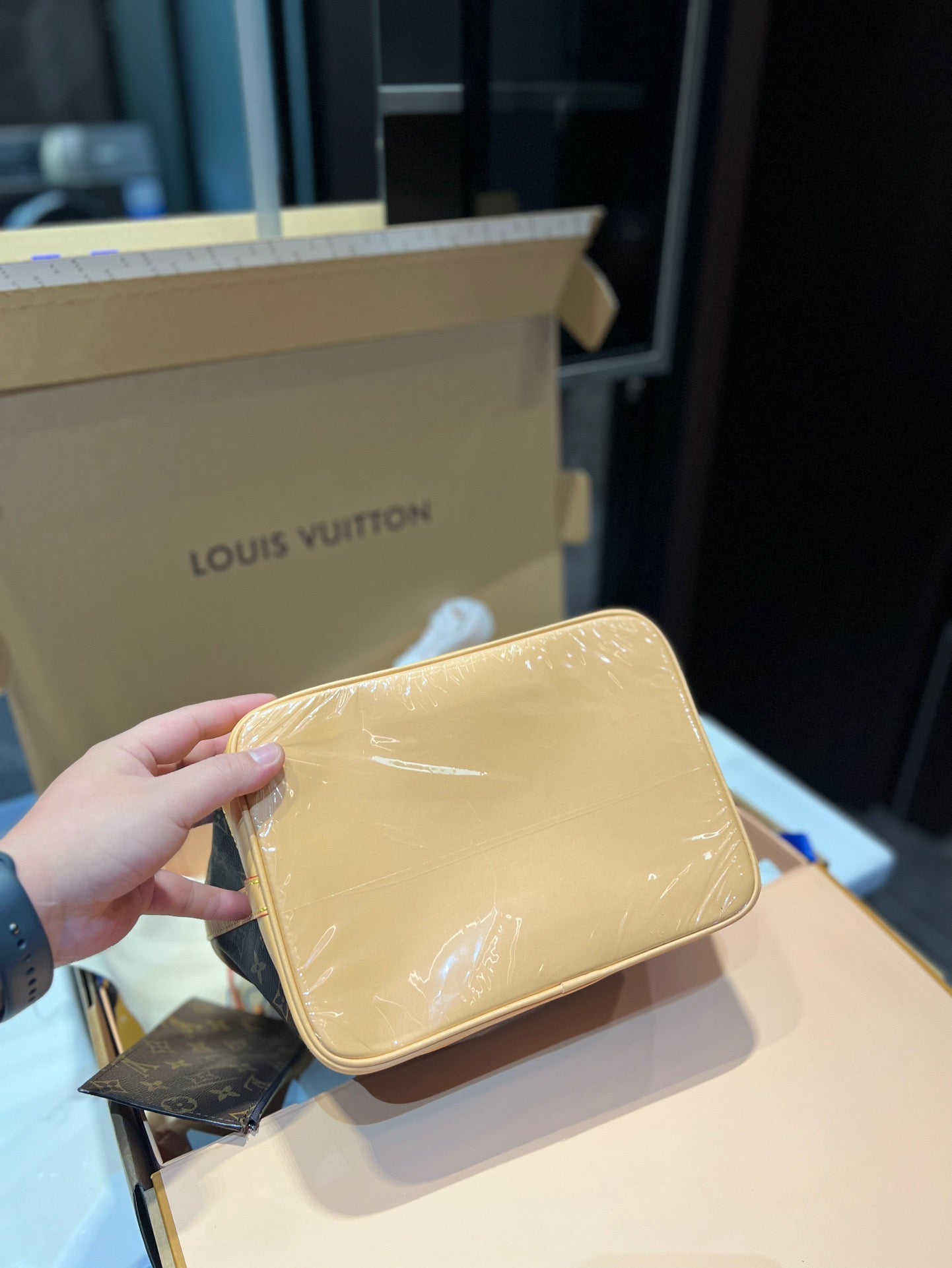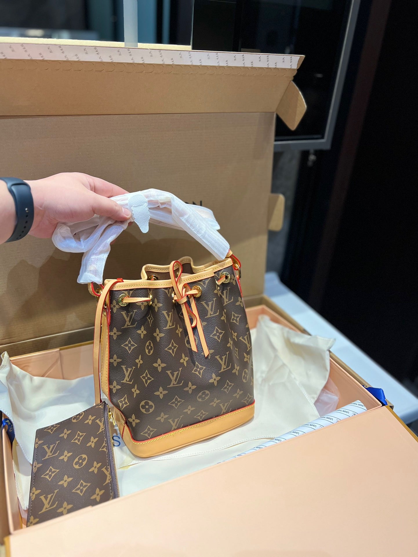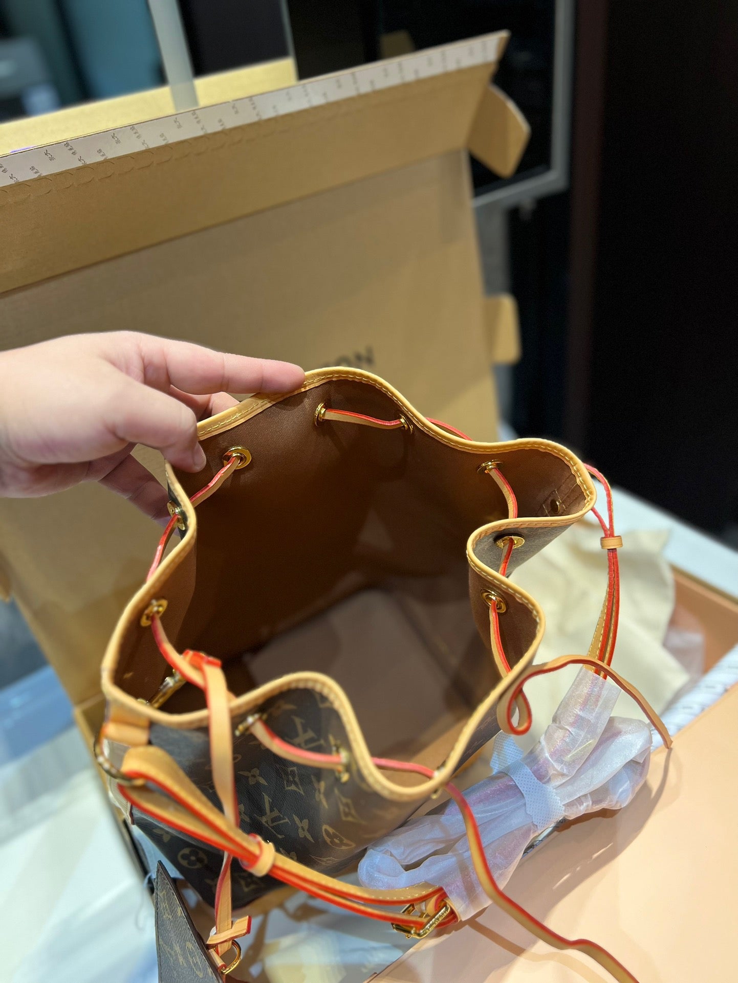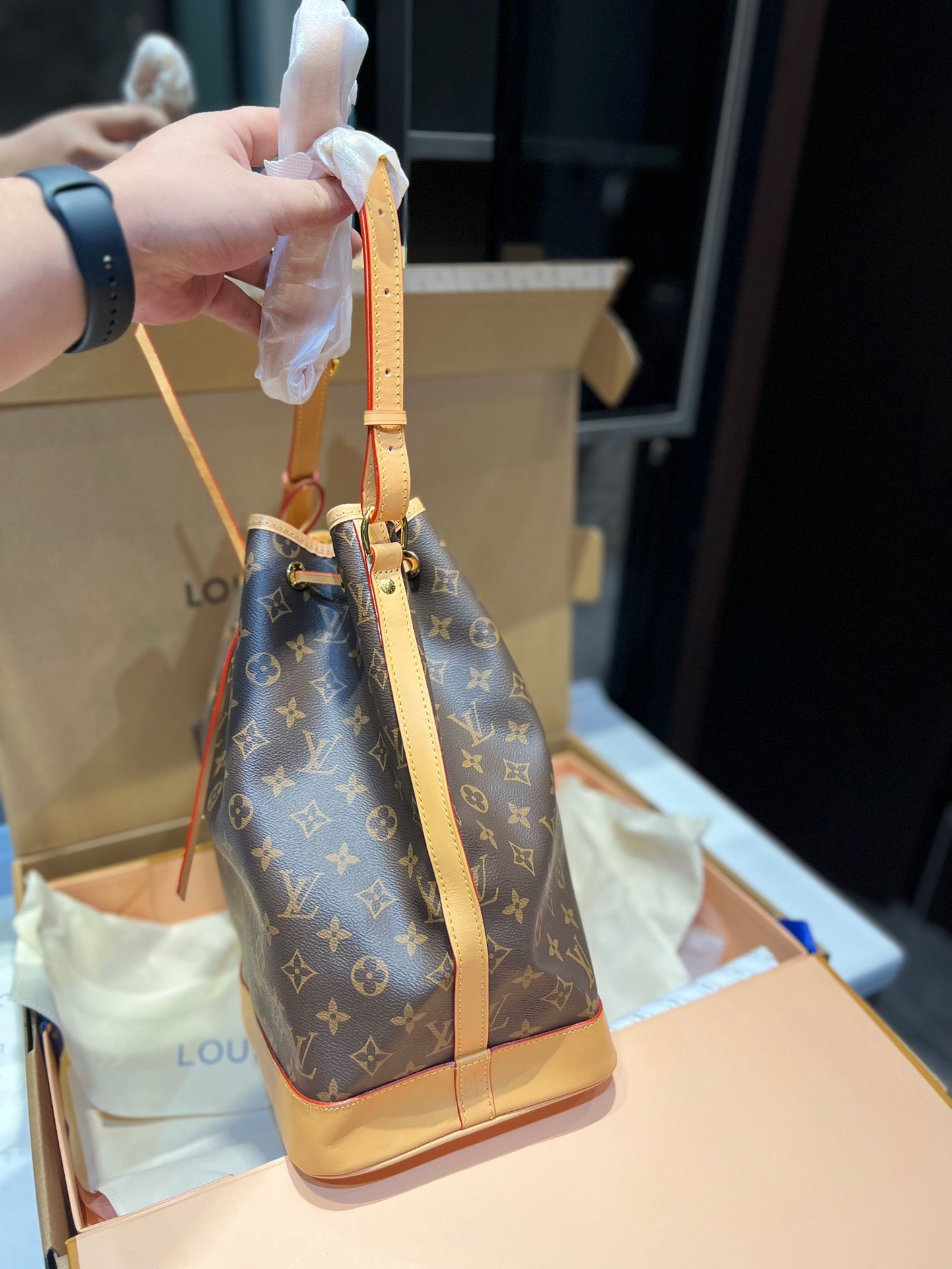 The Noé bucket bag harks back to a design from 1932. A Champagne producer asked Gaston-Louis Vuitton to develop a sturdy, stylish bag in which he could transport five bottles of bubbly. This model in body-friendly Monogram canvas retains key features of the original – the iconic shape, generous volume, drawstring closure – but is made for modern life. The leather strap adjusts for comfortable shoulder wear.