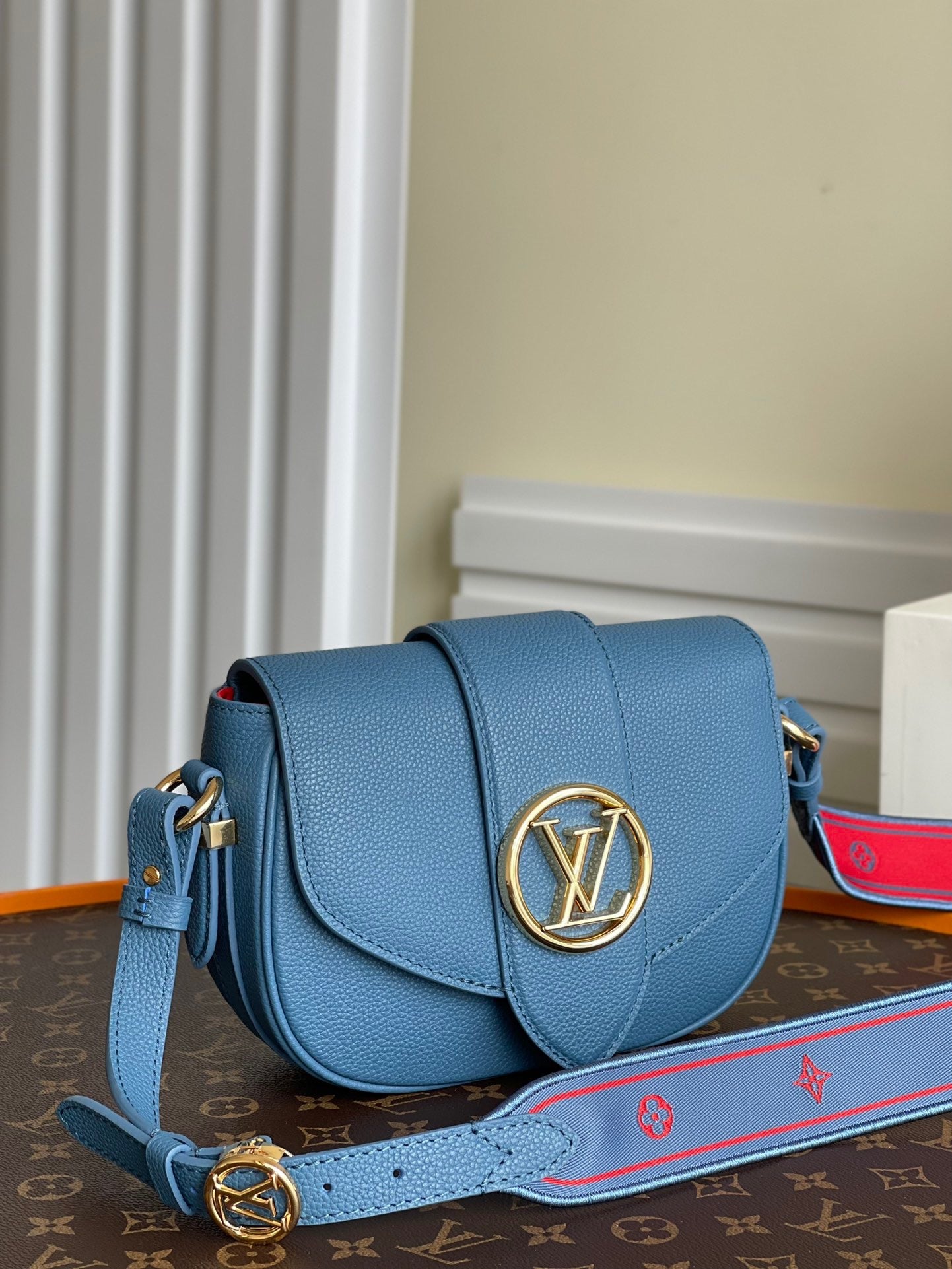Crafted from grained calfskin, the LV Pont 9 Soft PM handbag is signed with the golden LV Circle, a reinterpretation of a logo from the House’s archives that gives a sophisticated touch to the bag’s casual shape. An elegance echoed by the discreet Monogram Blossom under the flap. Monogram Flowers on the two-color strap complete the design.