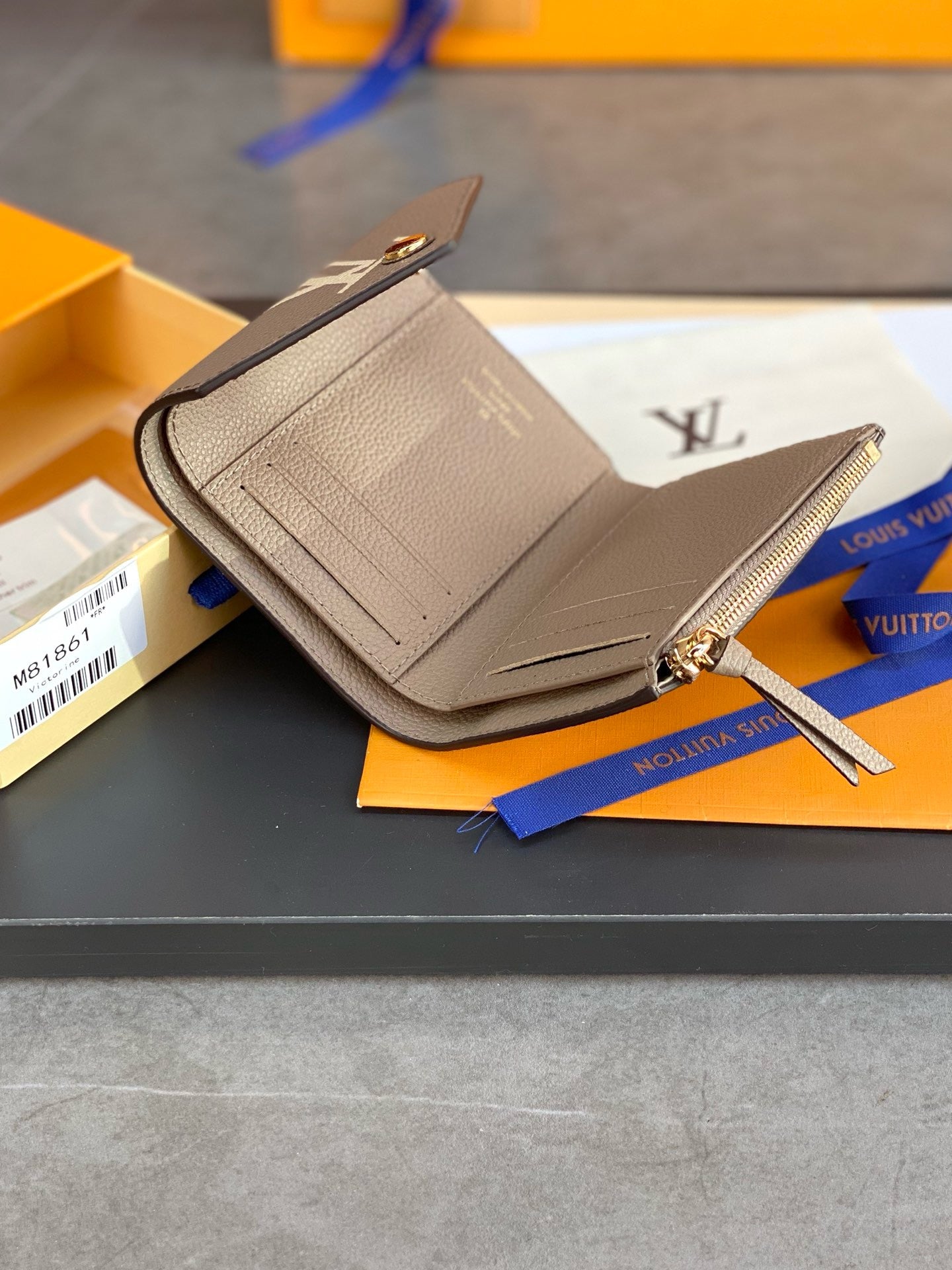 The Victorine wallet is revisited in supple, grained Monogram Empreinte leather, which is discreetly embossed with the iconic Monogram pattern. This tiny wallet has an envelope-style flap, which is fastened with a Louis Vuitton-engraved press-stud. Inside, it offers separate pockets for bills and coins, as well as six card slots.