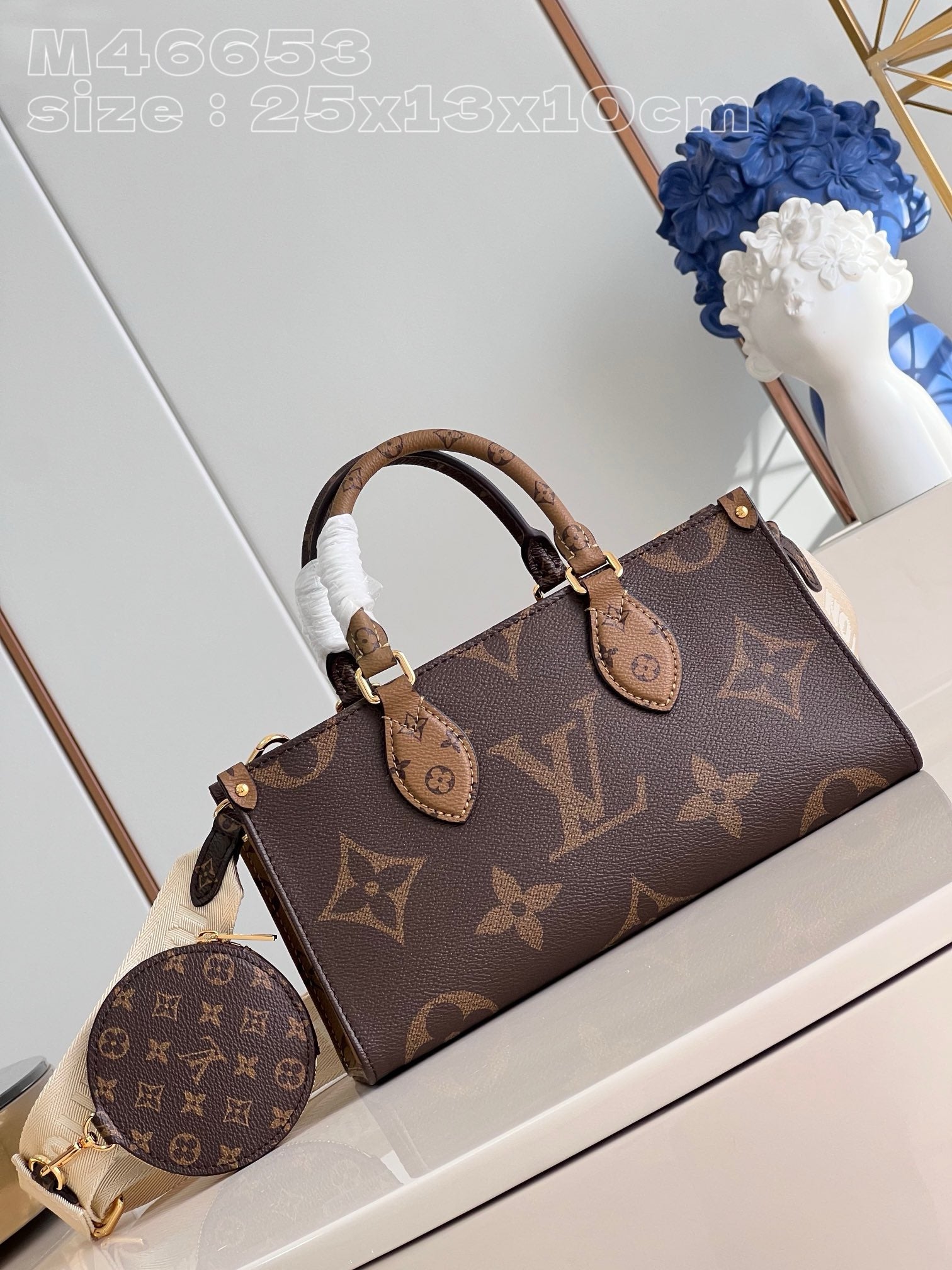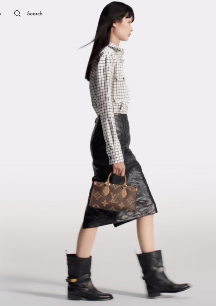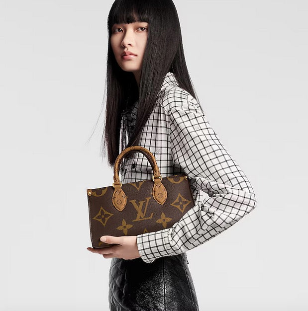 The Maison reinterprets the OnTheGo tote this season with a new east-west shape and a modern mix of Giant Monogram and Monogram Reverse canvas. Fitted with two Toron top handles and a wide, detachable strap, this beautifully proportioned bag can be styled in a variety of ways. A removable round coin purse completes this versatile design.