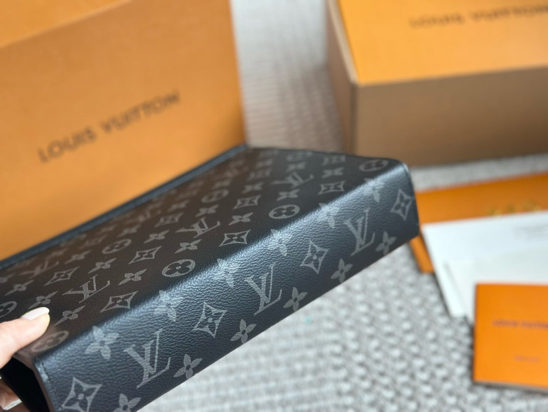 Compact, versatile and totally on-trend, this Pochette Voyage MM in Damier Graphite coated canvas can be slipped into a bag as a travel pouch or hand-carried for a trendier look. The spacious interior and gussets mean easy access to all your essentials.