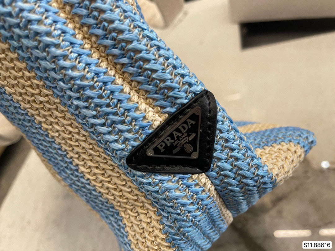 This tote bag with a soft, deconstructed design is made of raffia, a light material of natural origin with a summery mood. The embroidered lettering logo adorns the front, while the emblematic enameled metal triangle logo decorates the side.