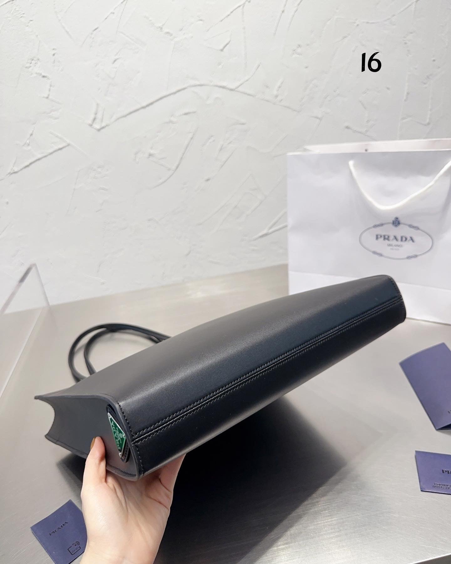 Introduced for the first time on trunks designed by Mario Prada, the Prada triangle expresses uniqueness and modernity through its universal, minimalist shape that is reinvented in a different way each season. Here, the geometric logo is transformed into an embossed detail that decorates the front of the leather tote full of contemporary yet refined allure.