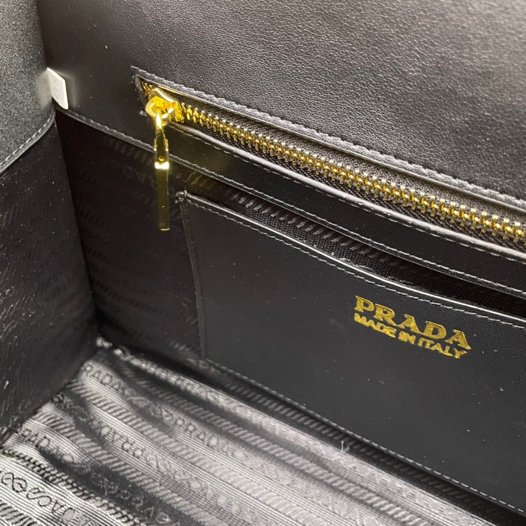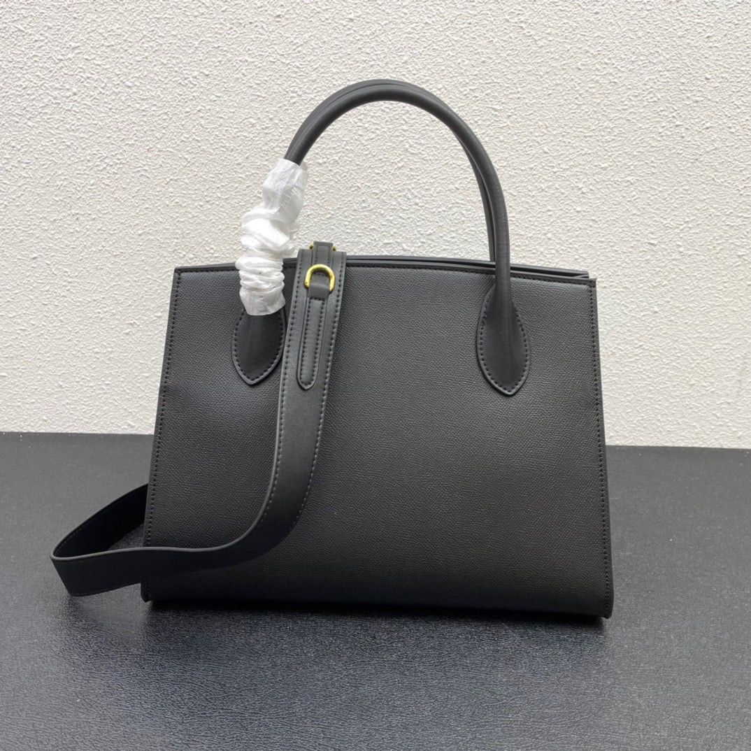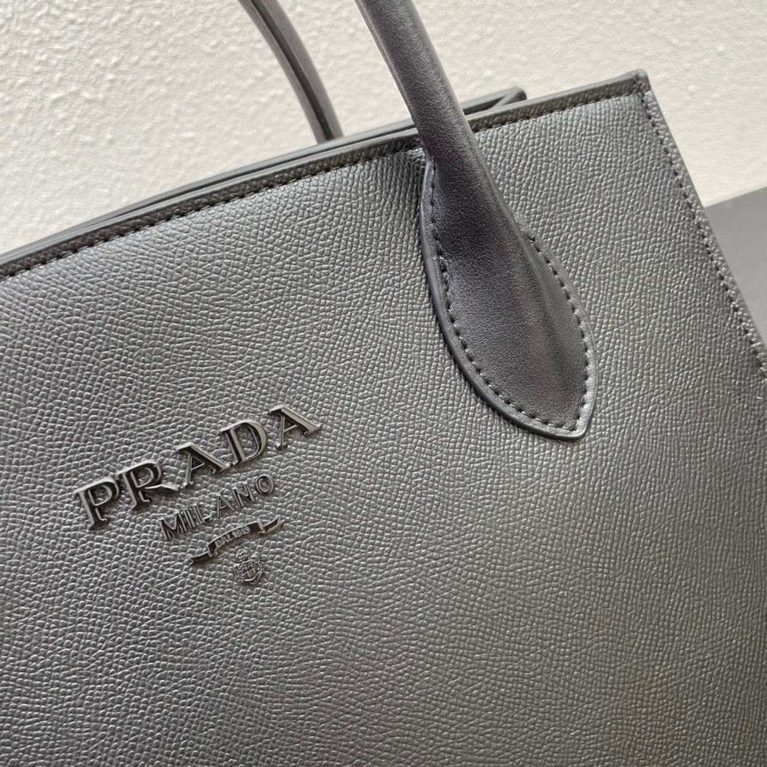 One shade colors the entire Prada Monochrome bag made of Saffiano leather and accented with the metal lettering logo. Saffiano leather, Prada's iconic material, is synonymous with luxury and identified with the traditional production of Italian leather goods: a premium leather of the highest quality, it is defined by its crosshatch texture and waxed finish.