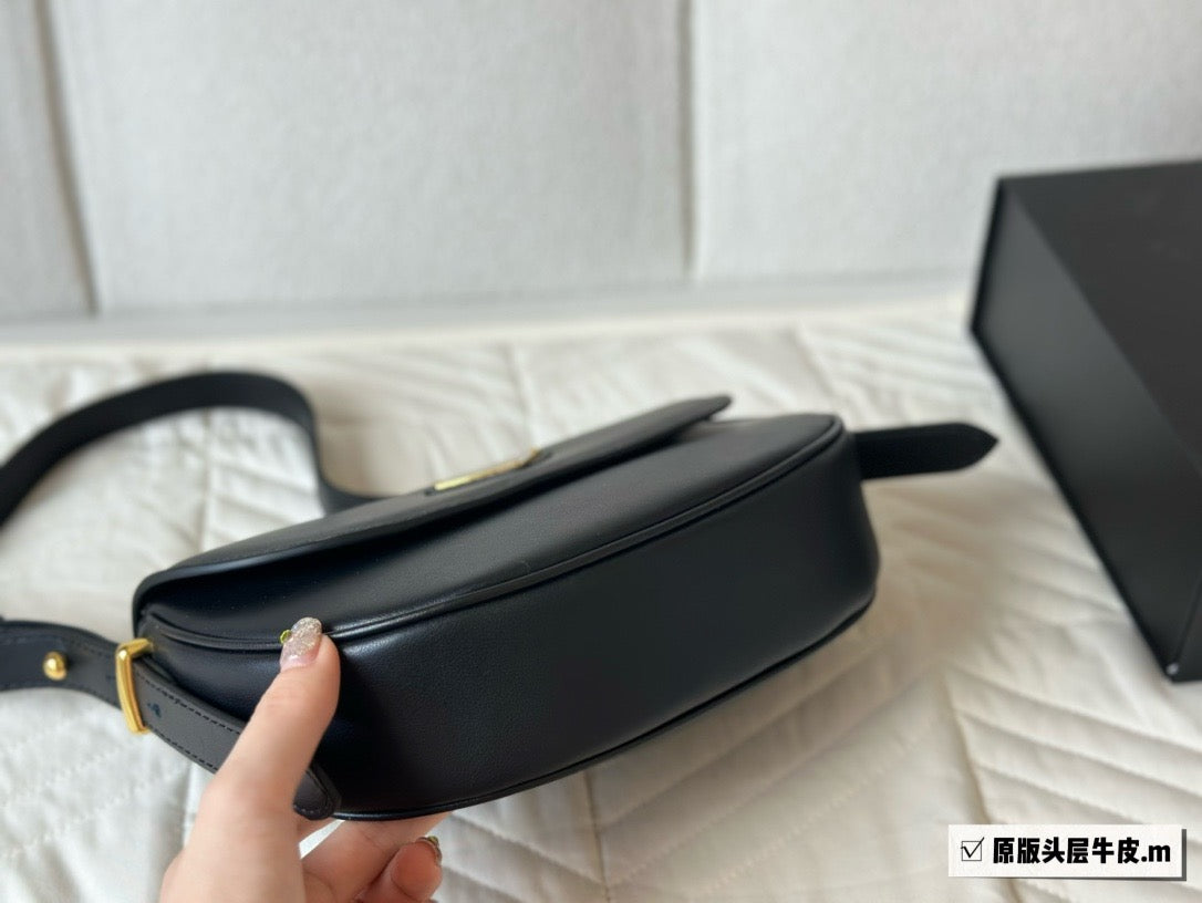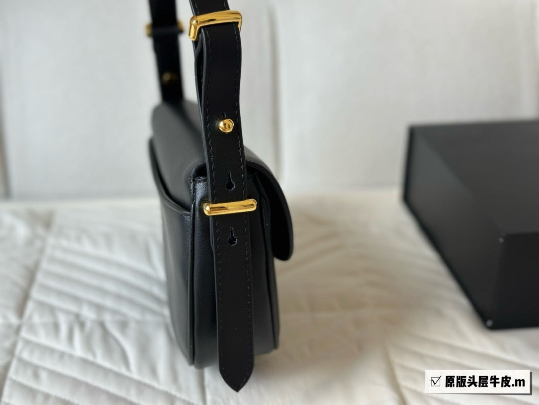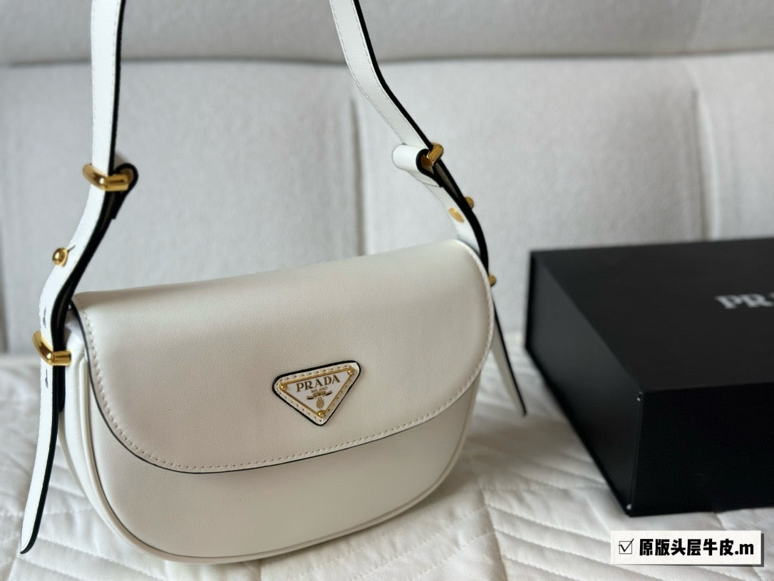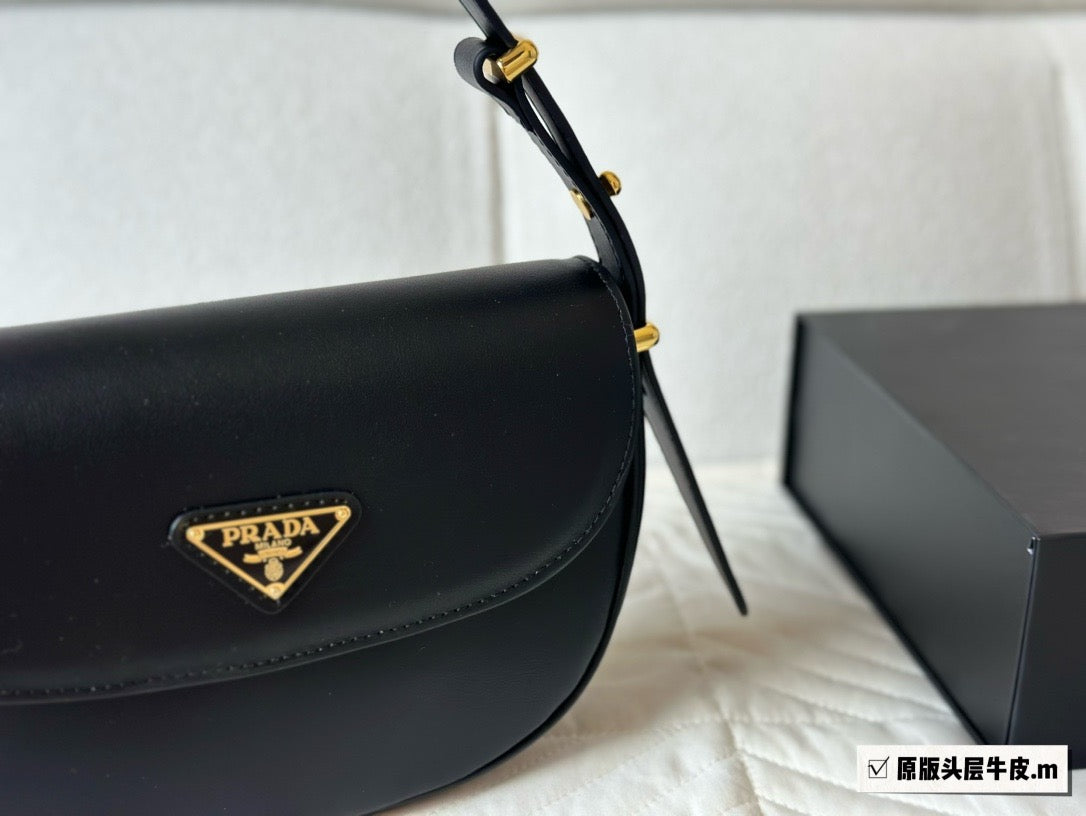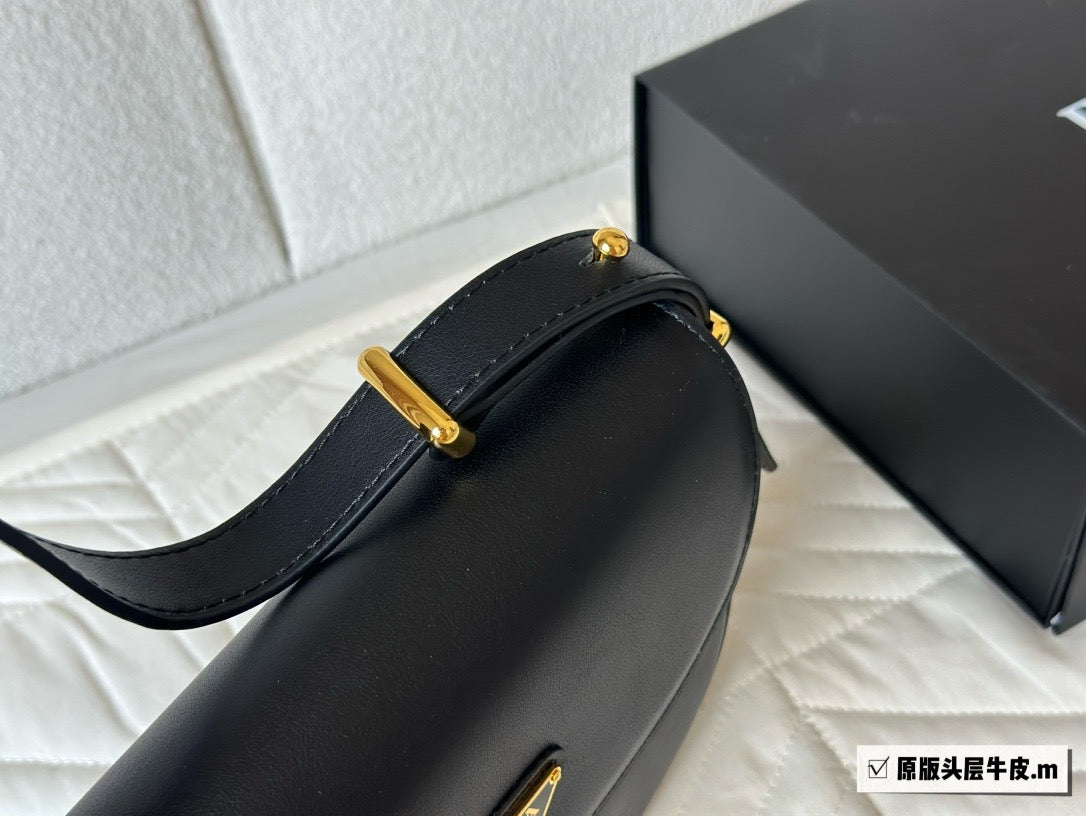 This refined and versatile leather bag features a sleek and compact design with structured volumes. To be worn over the shoulder or as a crossbody thanks to the elegant adjustable handle, the accessory with flap and nappa interior is defined by essential but refined details, an expression of the brand's artisanal know-how. The contemporary design is brightened by shiny metal hardware and is decorated with the iconic enameled metal triangle logo.