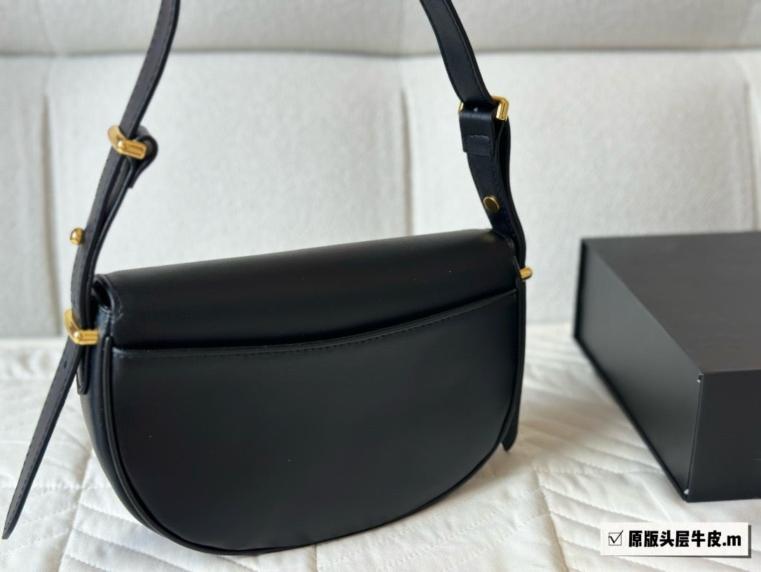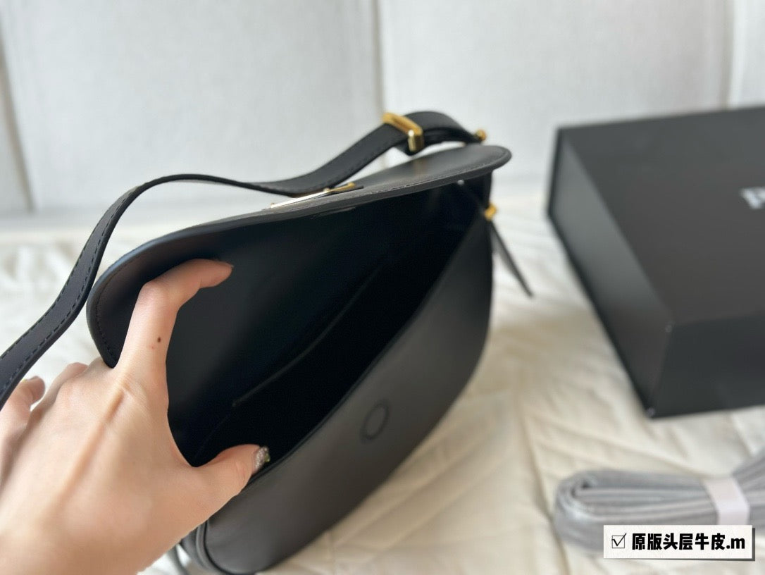 - Leather handle with extension for cross-body use