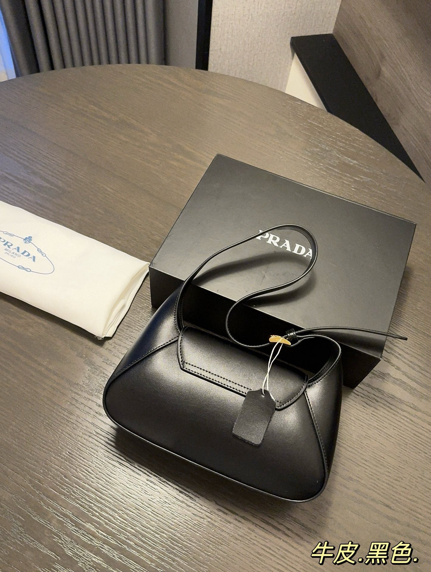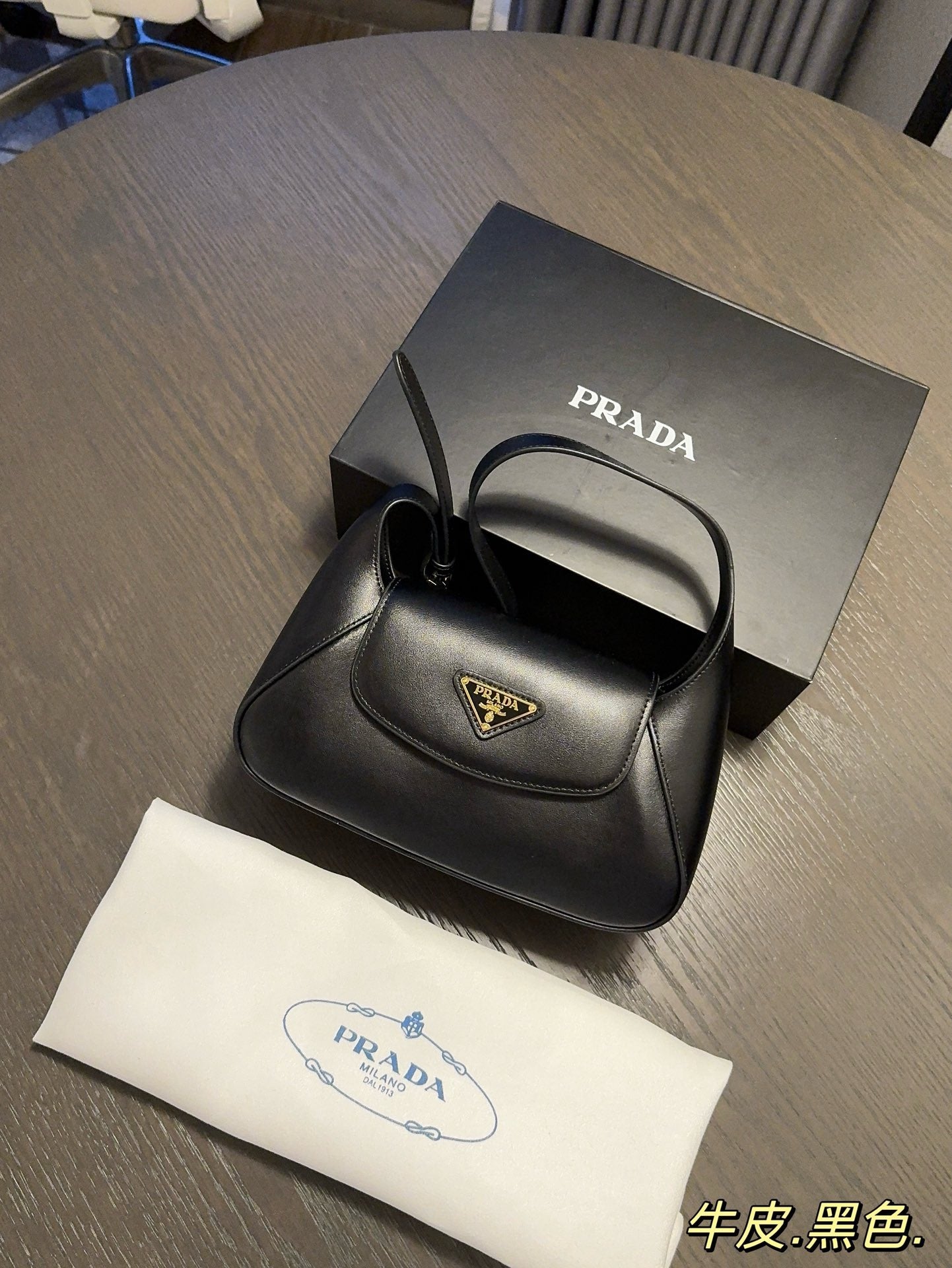 - Enameled metal triangle logo on the flap