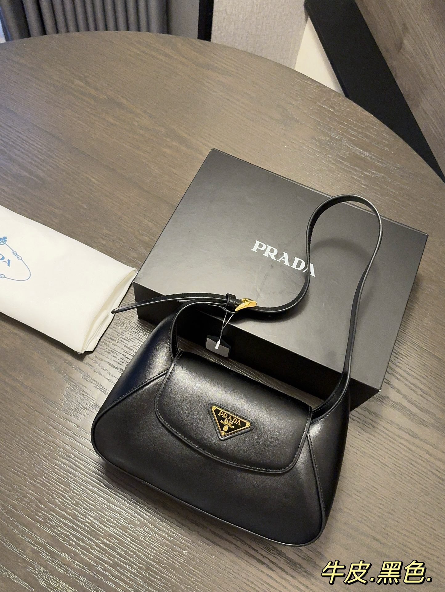 This modern, sophisticated leather bag is constructed with refined details and a sleek aesthetic, expression of exceptional artisan expertise. The linear, compact silhouette with nappa interior is characterized by the elegant adjustable handle and illuminated by the iconic buckle, a characteristic of Prada collections. The accessory, completed with a flap with magnetic closure, is decorated with the enameled metal triangle logo.