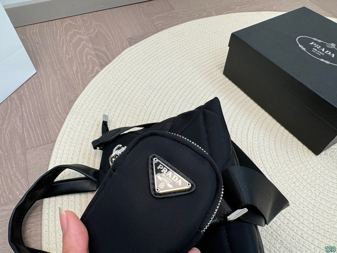 Prada's iconic triangle logo is reinterpreted in a patchwork motif that characterizes this tote bag with soft lines made of Re-Nylon, a regenerated yarn that is the sustainable evolution of an industrial fabric made iconic by Prada in the '80s. Complete with a mini pouch that attaches to the shoulder strap for a contemporary touch, the accessory is decorated with the iconic enameled metal triangle logo on the front.