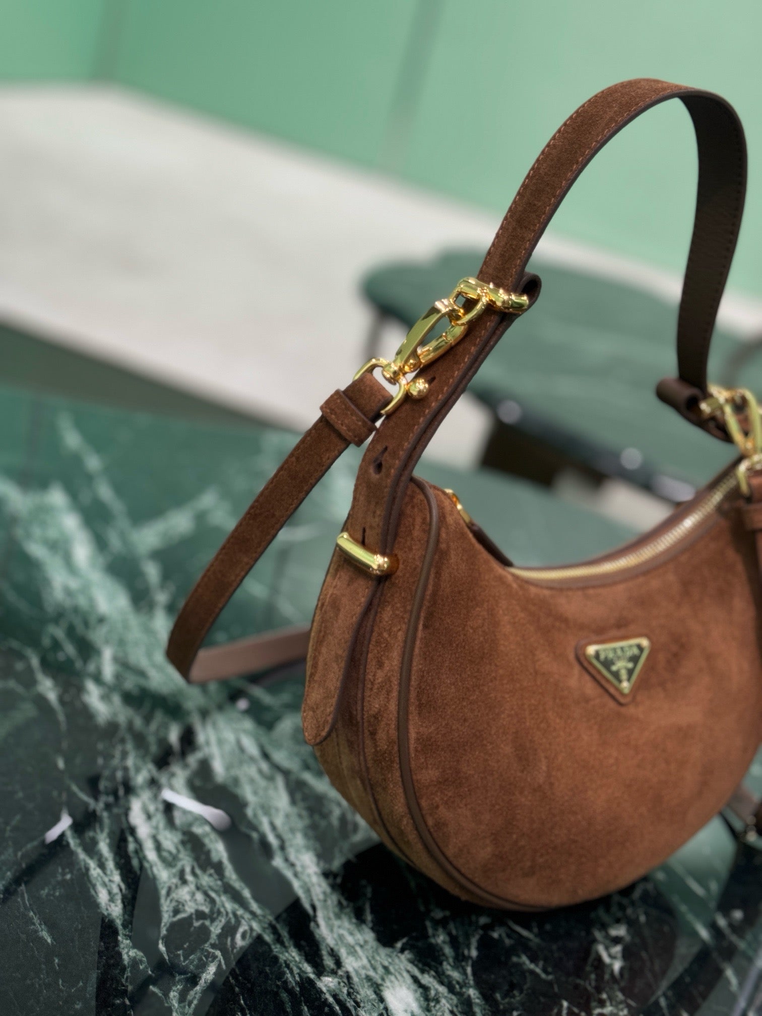 PD316 Prada Arqué Suede Shoulder Bag / HIGHEST QUALITY VERSION / 8.8x7.3x2.5inch