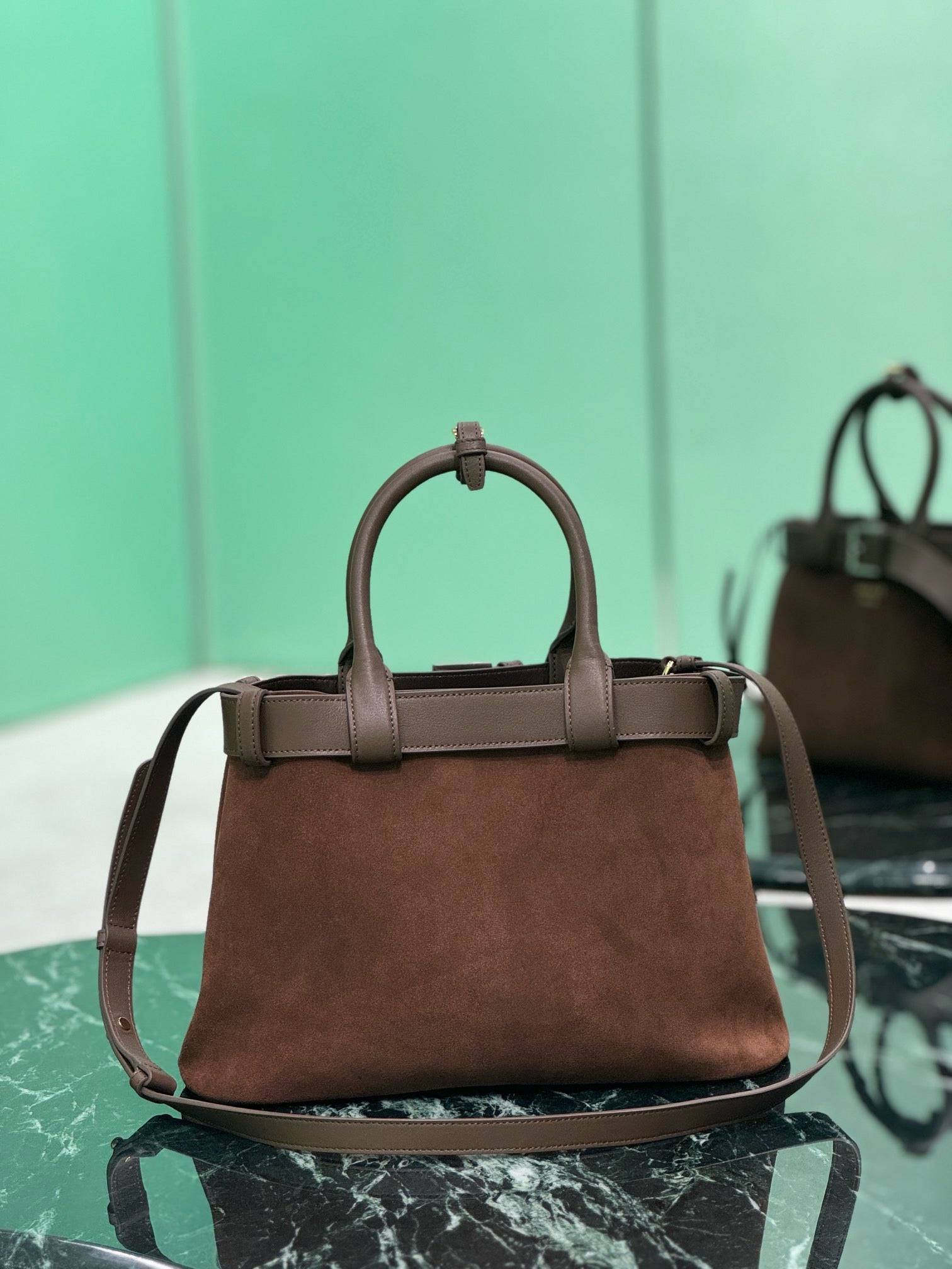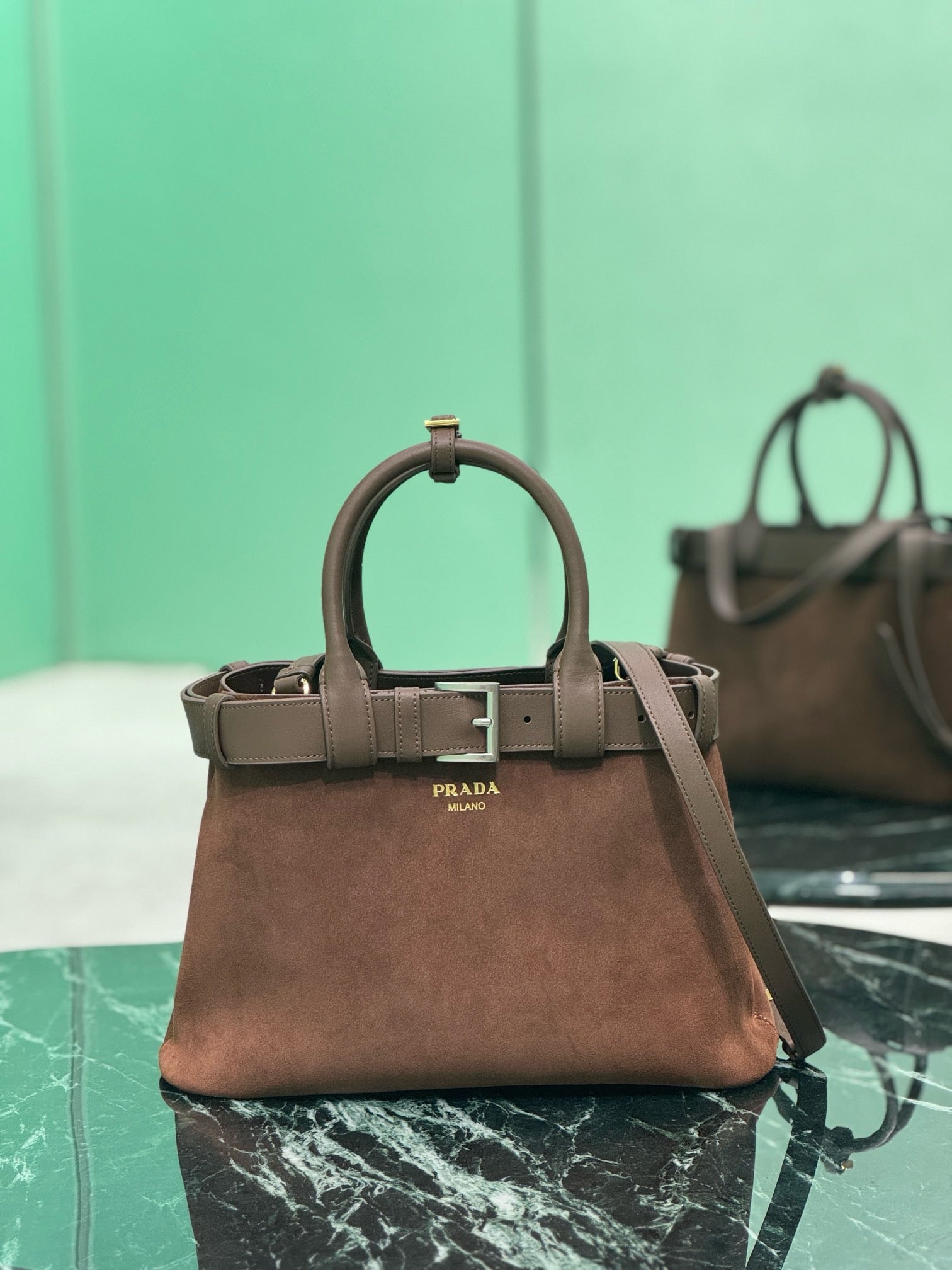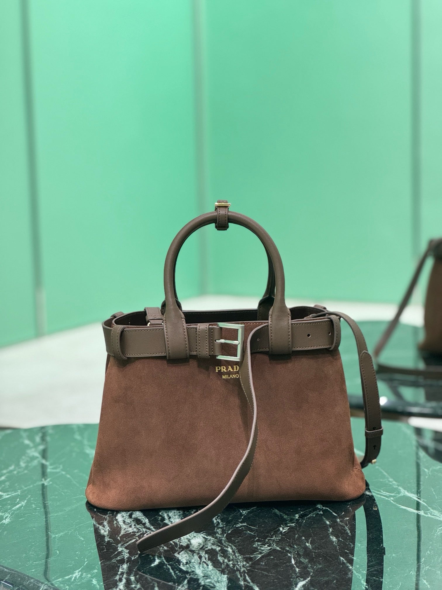 PD317 Medium Prada Buckle Suede Bag with Belt / HIGHEST QUALITY VERSION / 12.6x9x4.3inch