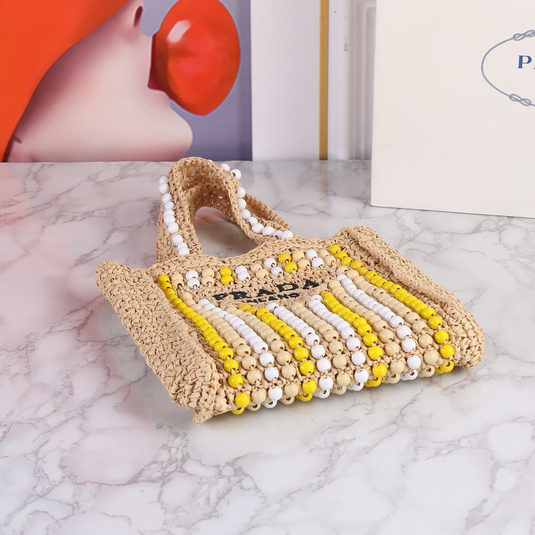 Design: This tote bag with a soft, deconstructed design is made of raffia, a material of natural origin imbued with a summery mood. A new interpretation of the emblematic PD triangle decorates the front and is embellished with the embroidered lettering logo at the center.