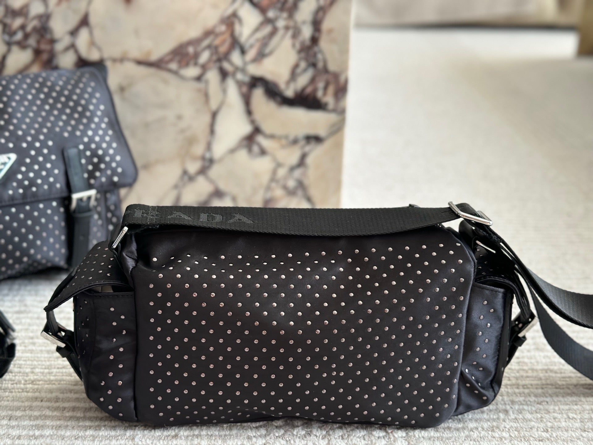 PD344 Re-Nylon Bag with Studs / 13.4x6.3inch